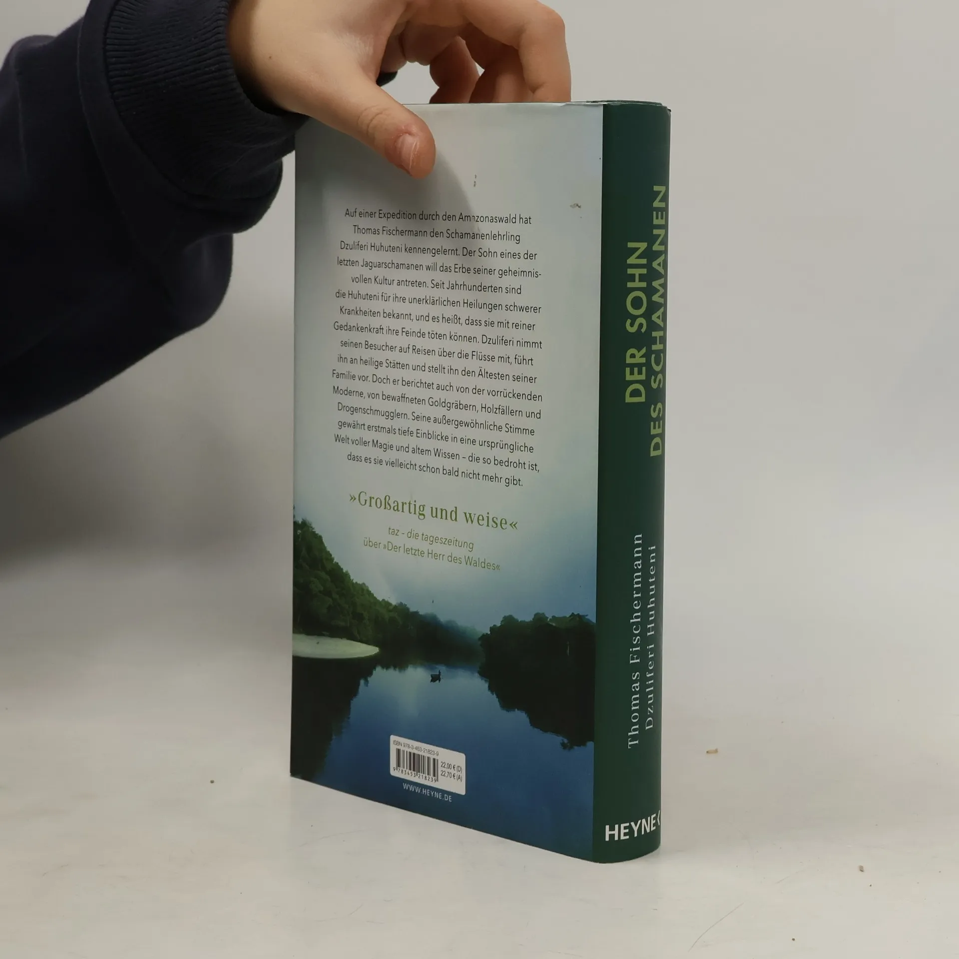 Auf einer Expedition durch den Amazonaswald hat Thomas Fischermann den Schamanenlehrling Dzuliferi Huhuteni kennengelernt. Der Sohn eines der letzten Jaguarschamanen will das Erbe seiner geheimnisvollen Kultur antreten. Seit Jahrhunderten sind die Huhuteni für ihre unerklärlichen Heilungen schwerer Krankheiten bekannt, doch es heißt auch, dass sie nur durch Gedankenkraft ihre Feinde töten können. Dzuliferi erzählt in diesem Buch seine Geschichte und die seines Volkes, aber auch von der vorrückenden Moderne, bewaffneten Goldgräbern, Holzfällern und Drogenschmugglern, die zunehmend in diesem Teil des Waldes gesichtet werden. Die außergewöhnliche Stimme des Schamanenlehrlings gewährt erstmals tiefe Einblicke in eine ursprüngliche Welt voller Magie und altem Wissen – die so bedroht ist, dass es sie vielleicht schon bald nicht mehr gibt. Ausstattung: m. Bildteil