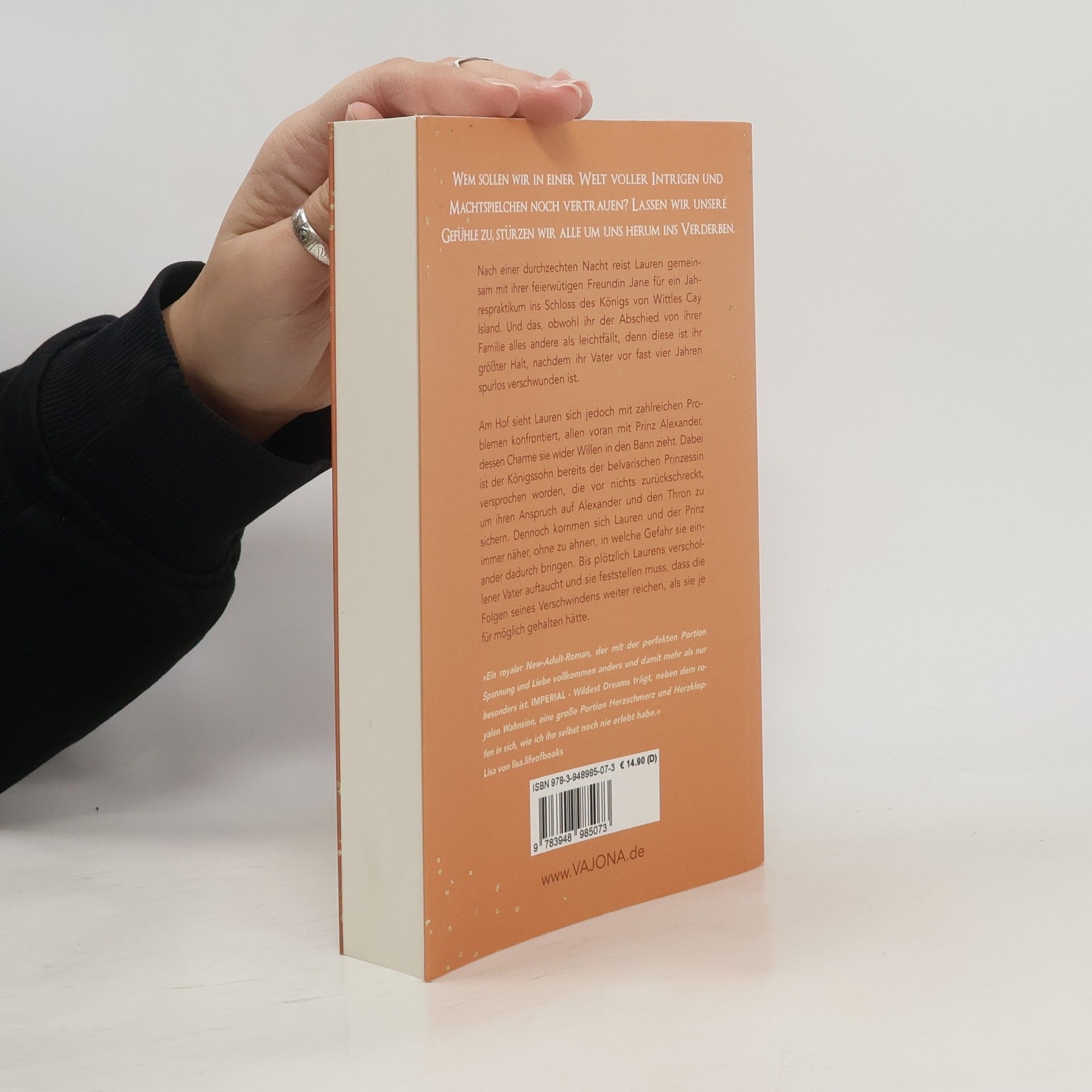 *Wem sollen wir in einer Welt voller Intrigen und Machtspielchen noch vertrauen? Lassen wir unsere Gefühle zu, stürzen wir alle um uns herum ins Verderben.*​ Nach einer durchzechten Nacht reist Lauren gemeinsam mit ihrer feierwütigen Freundin Jane für ein Jahrespraktikum ins Schloss des Königs von Wittles Cay Island. Und das, obwohl ihr der Abschied von ihrer Familie alles andere als leichtfällt, denn diese ist ihr größter Halt, nachdem ihr Vater vor fast vier Jahren spurlos verschwunden ist. Am Hof sieht Lauren sich jedoch mit zahlreichen Problemen konfrontiert, allen voran mit Prinz Alexander, dessen Charme sie wider Willen in den Bann zieht. Dabei ist der Königssohn bereits der belvarischen Prinzessin versprochen worden, die vor nichts zurückschreckt, um ihren Anspruch auf Alexander und den Thron zu sichern. Dennoch kommen sich Lauren und der Prinz immer näher, ohne zu ahnen, in welche Gefahr sie einander dadurch bringen. Bis plötzlich Laurens verschollener Vater auftaucht und sie feststellen muss, dass die Folgen seines Verschwindens weiter reichen, als sie je für möglich gehalten hätte.