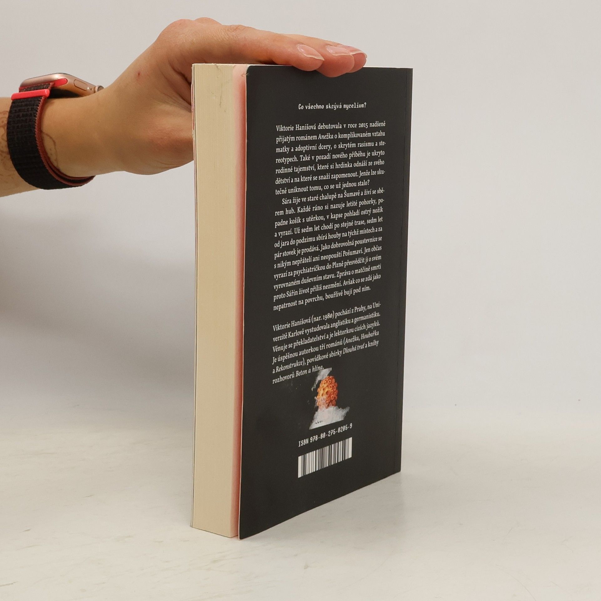 Co všechno skrývá mycelium? Viktorie Hanišová debutovala v roce 2015 nadšeně přijatým románem Anežka o komplikovaném vztahu matky a adoptivní dcery, o skrytém rasismu a stereotypech. Také v pozadí nového příběhu je ukryto rodinné tajemství, které si hrdinka odnáší ze svého dětství a na které se snaží zapomenout. Jenže lze skutečně uniknout tomu, co se už jednou stalo? Sára žije ve staré chalupě na Šumavě a živí se sběrem hub. Každé ráno si nazuje letité pohorky, popadne košík s utěrkou, v kapse pohladí ostrý nožík a vyrazí. Už sedm let chodí po stejné trase, sedm let od jara do podzimu sbírá houby na týchž místech a za pár stovek je prodává. Jako dobrovolná poustevnice se s nikým nepřátelí ani neopouští Pošumaví. Jen občas vyrazí za psychiatričkou do Plzně přesvědčit ji o svém vyrovnaném duševním stavu. Zpráva o matčině smrti proto Sářin život příliš nezmění. Avšak co se zdá jako nepatrnost na povrchu, bouřlivě bují pod ním.