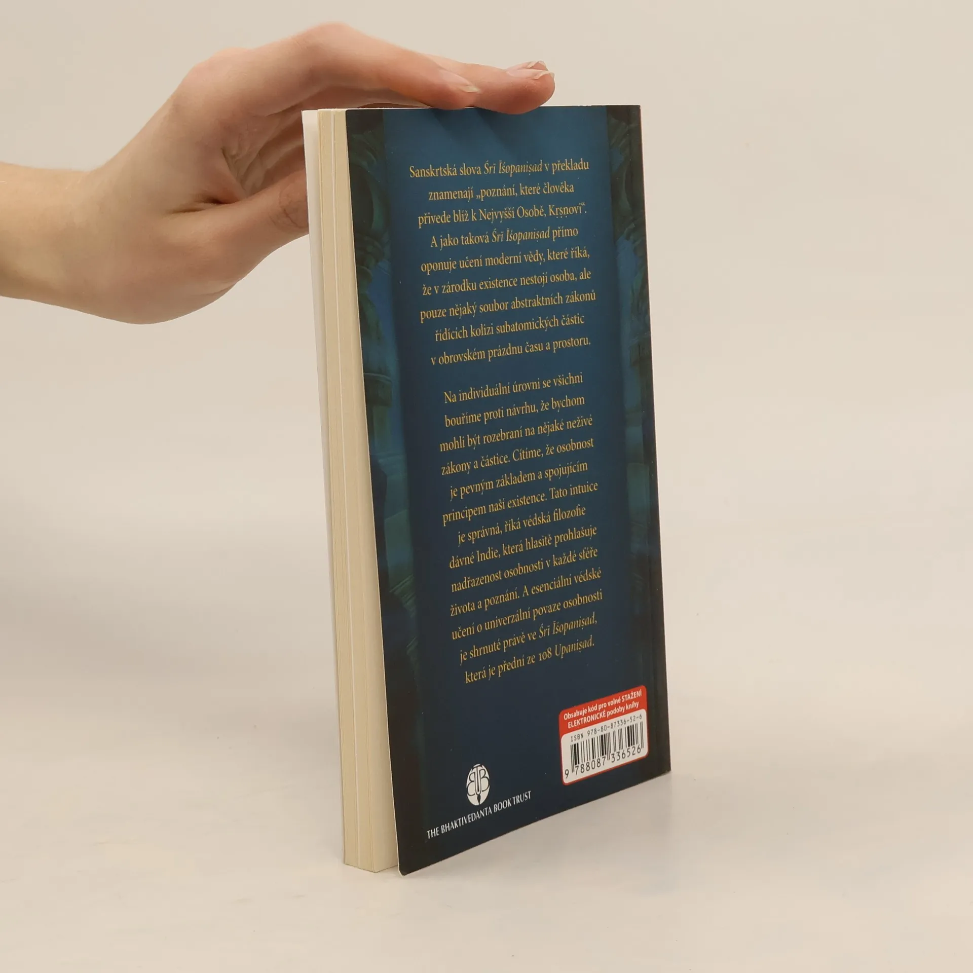 Poznání, jež člověka přivádí blíže k Nejvyšší Osobnosti Božství, Kršnovi. Jedná se o překlad Íšavásja Upanišady ze sanskrtského originálu. Komentářem opatřil A. Č. Bhaktivédánta Swami Prabhupáda.