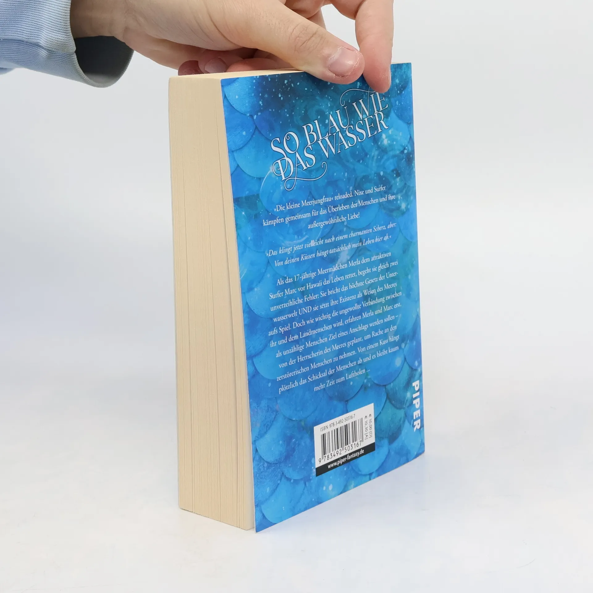 »Die kleine Meerjungfrau« reloaded. Nixe und Surfer kämpfen gemeinsam für das Überleben der Menschen und ihre außergewöhnliche Liebe »Das klingt jetzt vielleicht nach einem charmanten Scherz, aber: Von deinen Küssen hängt tatsächlich mein Leben hier ab.« Als das 17-jährige Meermädchen Merla dem attraktiven Surfer Marc vor Hawaii das Leben rettet, begeht sie gleich zwei unverzeihliche Fehler: Sie bricht das höchste Gesetz der Unterwasserwelt UND sie setzt ihre Existenz als Wesen des Meeres aufs Spiel. Doch wie wichtig die ungewollte Verbindung zwischen ihr und dem Landmenschen wird, erfahren Merla und Marc erst, als unzählige Menschen Ziel eines Anschlags werden sollen – von der Herrscherin des Meeres geplant, um Rache an den zerstörerischen Menschen zu nehmen. Von einem Kuss hängt plötzlich das Schicksal der Menschen ab und es bleibt kaum mehr Zeit zum Luftholen ...