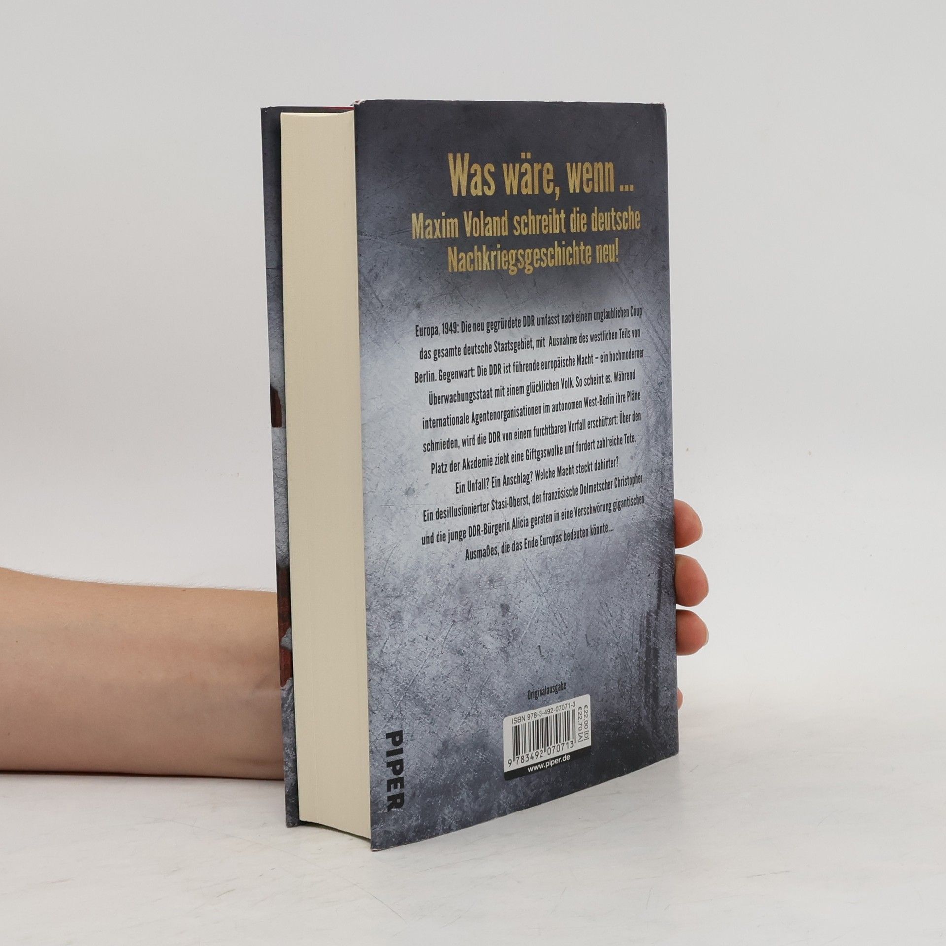 "Europa, 1949: Die neu gegründete DDR umfasst nach einem unglaublichen Coup das gesamte deutsche Staatsgebiet, mit Ausnahme des westlichen Teils von Berlin. Gegenwart: Die DDR ist führende europäische Macht -- ein hochmoderner Überwachungsstaat mit einem glücklichen Volk. So scheint es. Während internationale Agentenorganisationen im autonomen West-Berlin ihre Pläne schmieden, wird die DDR von einem furchtbaren Vorfall erschüttert: Über den Platz der Akademie zieht eine Giftgaswolke und fordert zahlreiche Tote. Ein Unfall? Ein Anschlag? Welche Macht steckt dahinter? Ein desillusionierter Stasi-Oberst, der französische Dolmetscher Christopher und die junge DDR-Bürgerin Alicia geraten in eine Verschwörung gigantischen Ausmasses, die das Ende Europas bedeuten könnte ..."-- Back cover