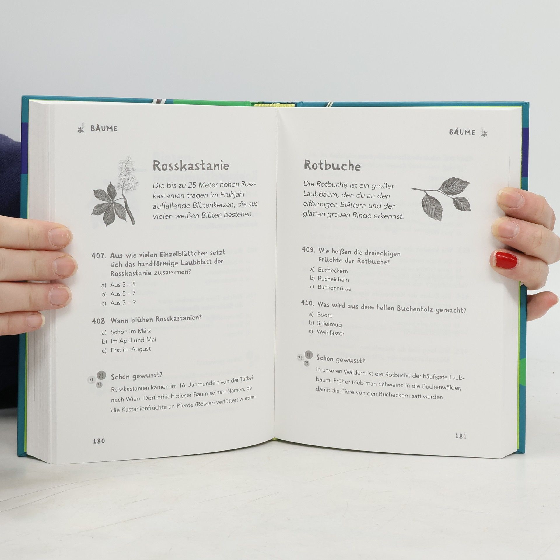 Können Pferde rülpsen? Warum summen Alpakas? Und welche Sportart übt die Blaumeise täglich aus? Die spannenden Multiple-Choice-Fragen in diesem großen Naturquiz drehen sich um Tiere und Pflanzen aus aller Welt. Besondere Tiere werden in bebilderten Porträts vorgestellt. Dazu gibt es offene Fragen, mit denen echte Alleswisser tiefer einsteigen können. Und wenn’s doch mal klemmt: Alle Lösungen findet man am Ende des Buchs.