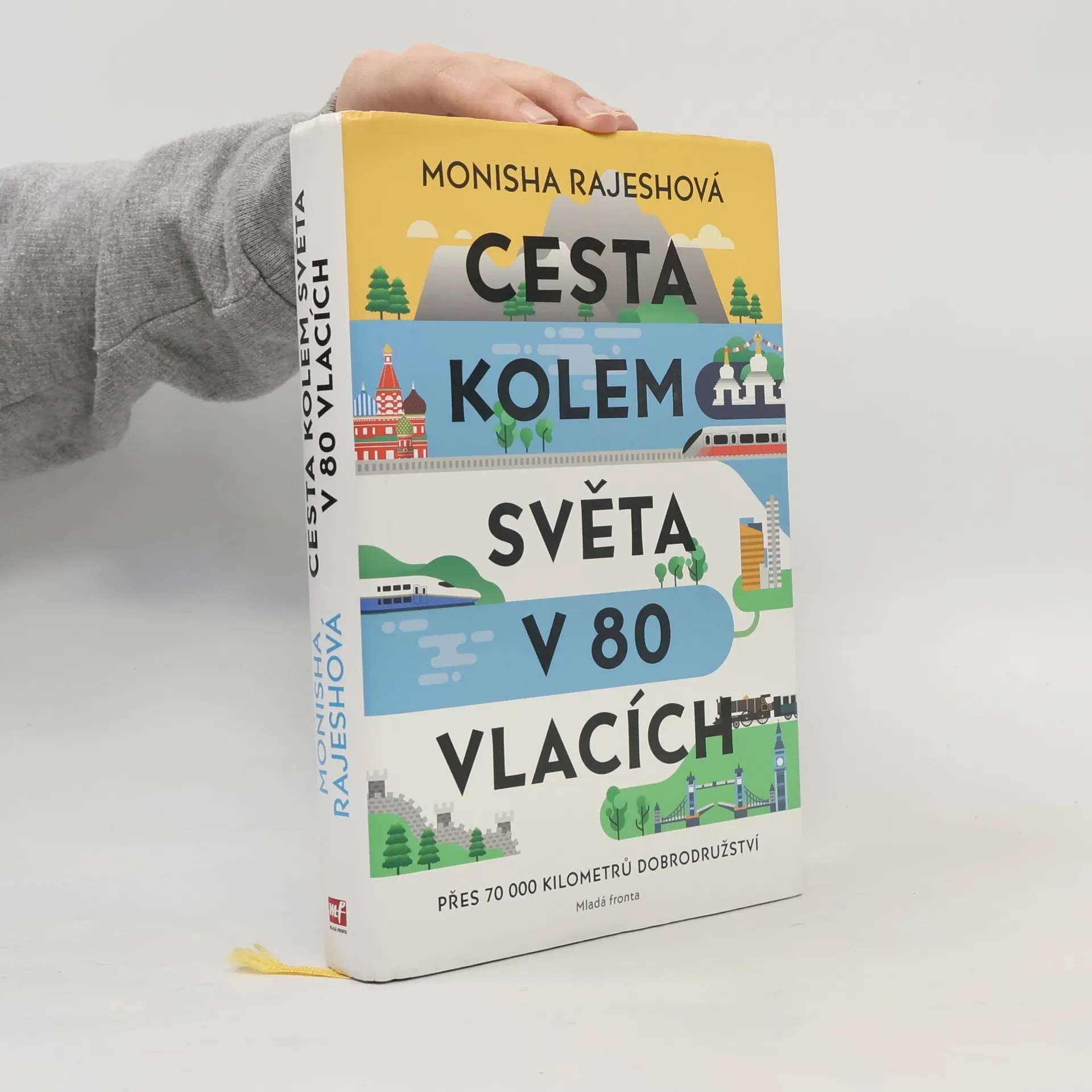 Přes 70 000 kilometrů dobrodružství na kolejích. Když Monisha oznámila svůj záměr absolvovat cestu kolem světa v 80 vlacích, všichni si jen klepali na čelo. Přesto netrvalo dlouho a ona skutečně hodila batoh na záda, vzala za ruku svého snoubence Jema a vydala se na pečlivě naplánovanou pouť po kolejích čítající více než 70 000 kilometrů z jednoho konce světa na druhý a zase zpátky. Během sedmi měsíců jim za okénkem ubíhaly tak rozdílné kraje jako Mongolsko, Kanada, Čína, Japonsko, Kazachstán, Rusko, Amerika, a dokonce se odvážili i do Severní Koreje. Projeli se po Transsibiřské magistrále, luxusním Orient Expresem, japonskými rychlovlaky, ale také ušmudlanými lokálkami. Potkali spoustu zábavných, svérázných a milých pasažérů, s nimiž si směňovali jídlo i životní příběhy. Monisha Rajeshová, novinářka působící mimo jiné v denících The Guardian či The New York Times, o svém putování vypráví tak, že si tu každý najde svoje. Bizarní i komické zážitky z vlaků střídá poetický popis krajiny nebo hekticky pulsujících velkoměst, nechybí společensko-politický kontext, historické vsuvky a vtipné komentáře. Po přečtení dostane každý chuť sbalit si svých pět švestek a nasednout do prvního dálkového expresu.