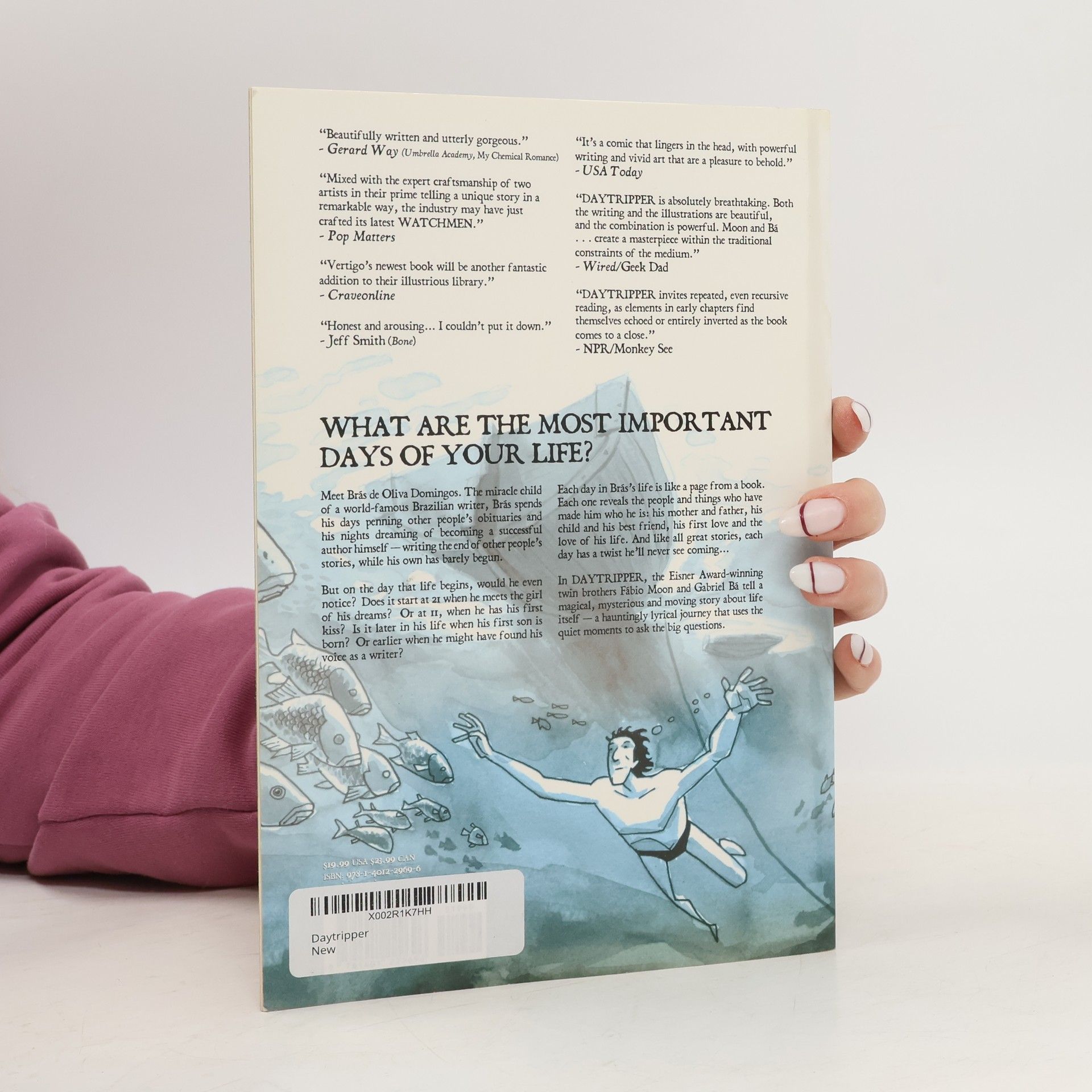 What are the most important days of your life?Meet Brás de Oliva Domingos. The miracle child of a world-famous Brazilian writer, Brás spends his days penning other people's obituaries and his nights dreaming of becoming a successful author himself—writing the end of other people's stories, while his own has barely begun.But on the day that life begins, would he even notice? Does it start at 21 when he meets the girl of his dreams? Or at 11, when he has his first kiss? Is it later in his life when his first son is born? Or earlier when he might have found his voice as a writer?Each day in Brás's life is like a page from a book. Each one reveals the people and things who have made him who he is: his mother and father, his child and his best friend, his first love and the love of his life. And like all great stories, each day has a twist he'll never see coming...In Daytripper, the Eisner Award-winning twin brothers Fábio Moon and Gabriel Bá tell a magical, mysterious and moving story about life itself—a hauntingly lyrical journey that uses the quiet moments to ask the big questions.