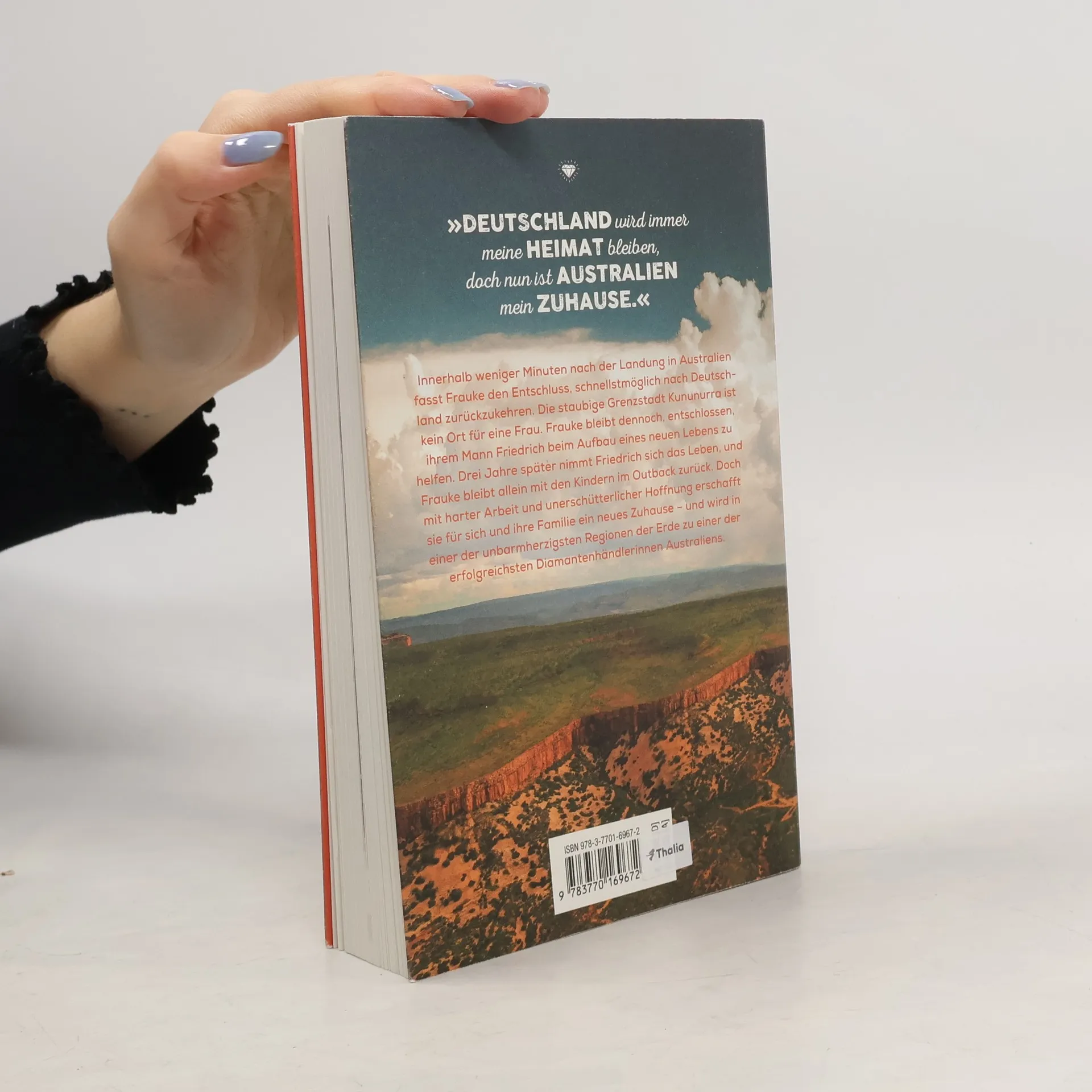 Die inspiriende Geschichte einer starken Frau, die in einer der unbarmherzigsten Regionen auf der Erde zur erfolgreichsten Diamantenhändlerinnen Australiens wird. Australien 1981: Innerhalb weniger Minuten nach der Landung in Kununurra fasst Frauke den Entschluss, schnellstmöglich nach Deutschland zurückzukehren. Die staubige Grenzstadt ist kein Ort für eine Frau. Frauke bleibt dennoch, wild entschlossen, ihrem Mann Friedrich zu helfen, ein neues Leben in der Landwirtschaft aufzubauen. Drei Jahre später nimmt Friedrich sich das Leben – und Frauke bleibt alleine mit den Kindern im Outback zurück. Doch mit harter Arbeit und unerschütterlicher Hoffnung erschafft sie für sich und ihre Familie ein neues Zuhause. Eine Frau zwischen Hoffnung, Verzweiflung und dem großen Glück Ein bewegendes Schicksal, persönlich erzählt Tiefe Einblicke in das Leben im Outback