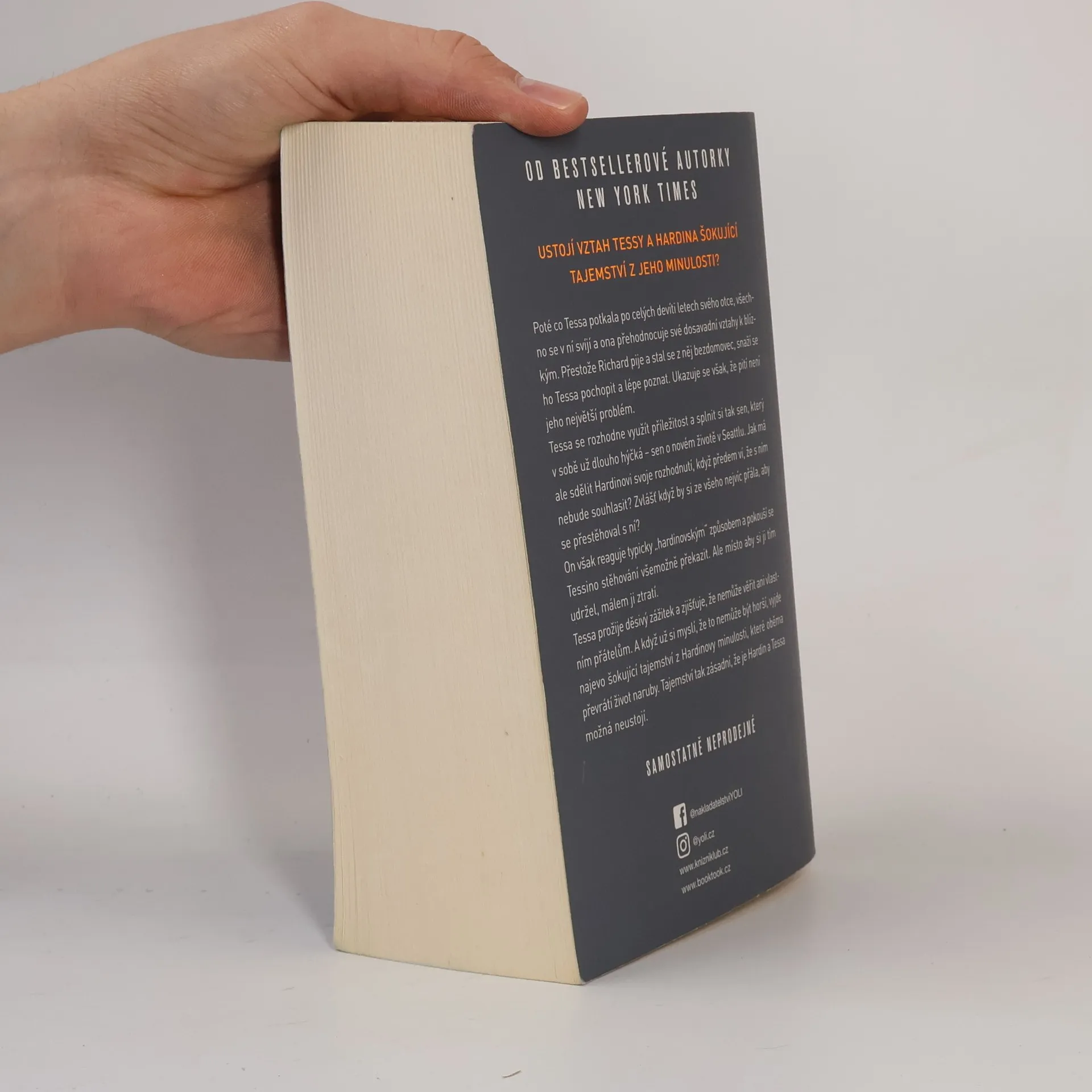 Další část romantické řady, v níž se v citových vírech topí a zase zachraňují dva mladí protagonisté této série - Tessy a Hardina. Tessa a Hardin jeden bez druhého nedokážou existovat. A zároveň nejsou schopní žít spolu. Poté co Tessa potkala po celých devíti letech svého otce, všechno se v ní svíjí a ona přehodnocuje své dosavadní vztahy k blízkým. Přestože Richard pije a stal se z něj bezdomovec, snaží se ho Tessa pochopit a lépe poznat. Ukazuje se však, že pití není jeho největší problém. Tessa se rozhodne využít příležitost a splnit si tak sen, který v sobě už dlouho hýčká - sen o novém životě v Seattlu. Jak má ale sdělit Hardinovi svoje rozhodnutí, když předem ví, že s ním nebude souhlasit? Zvlášť když by si ze všeho nejvíc přála, aby se přestěhoval s ní? On však reaguje typicky "hardinovským" způsobem a pokouší se Tessino stěhování všemožně překazit. Ale místo aby si ji tím udržel, málem ji ztratí. Nakladatelská anotace. Kráceno.