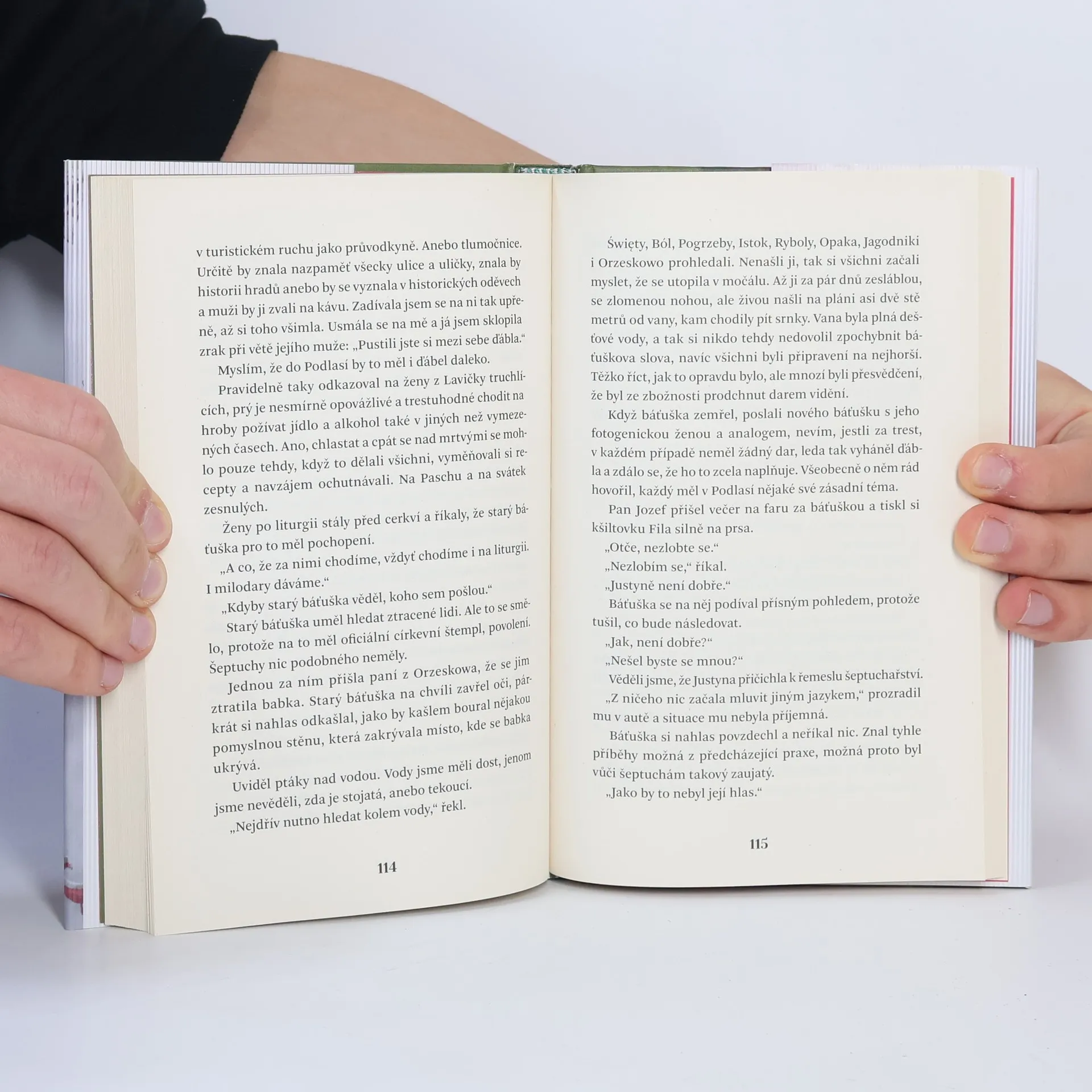 Podlasí, lesnatá oblast mezi Polskem a Běloruskem, je tak trochu zapomenutý kraj. Dodnes je opředený legendami a mlhami, v nichž žijí na první pohled zvláštní lidé — mají svoji víru, bídu a šeptuchy: ženy, které umějí léčit. Anebo neumějí, ale všichni tomu věří. Příběhem dospívání hrobařovy dcery Doroty v magickém kraji provází čtenáře její nejlepší kamarádka. Fenomén hranic a jejich (ne)překročitelnosti je neodbytný jako refrén devadesátkového hitu z MTV. Svět živých se prolíná se světem mrtvých, křesťanská zbožnost s pohanskou šeptuchářskou tradicí, moderní západní kulturní impulzy splývají s místním folklorem. Hrdinky románu žene nezastavitelná touha odejít, překročit hranici, vymanit se. Ale ať už půjdou kamkoli, zkušenost se životem na periferii si ponesou vždy s sebou.