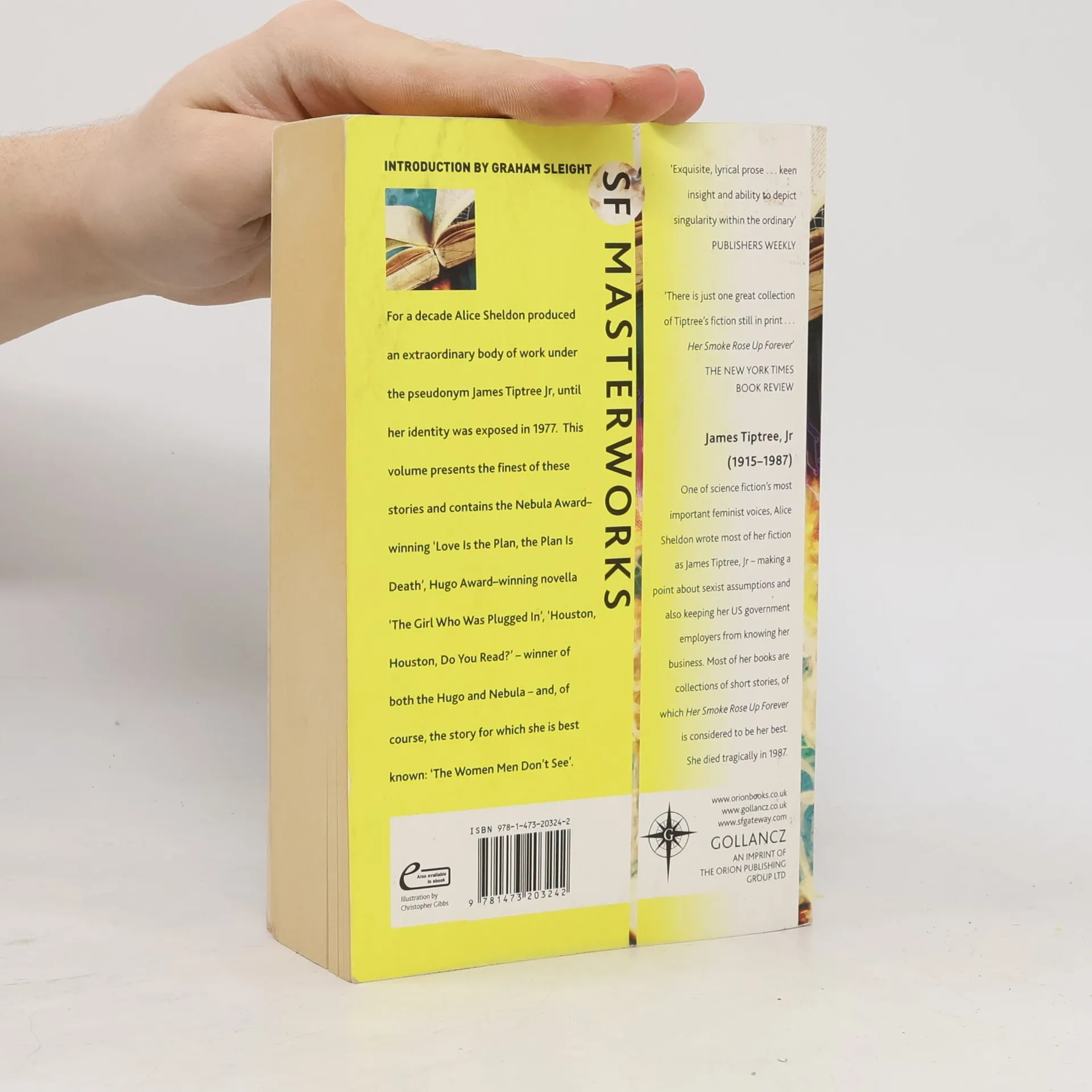 For a decade Alice Sheldon produced an extraordinary body of work under the pseudonym James Tiptree Jr, until her identity was exposed in 1977. HER SMOKE ROSE UP FOREVER presents the finest of these stories and contains the NEBULA AWARD-winning LOVE IS THE PLAN THE PLAN IS DEATH; HUGO AWARD-winning novella THE GIRL WHO WAS PLUGGED IN; HOUSTON, HOUSTON, DO YOU READ? - winner of both the HUGO and NEBULA - and of course the story for which she is best known: THE WOMEN MEN DON'T SEE. This is a true masterwork - an overview of one of SF's true greats at the very height of her powers.