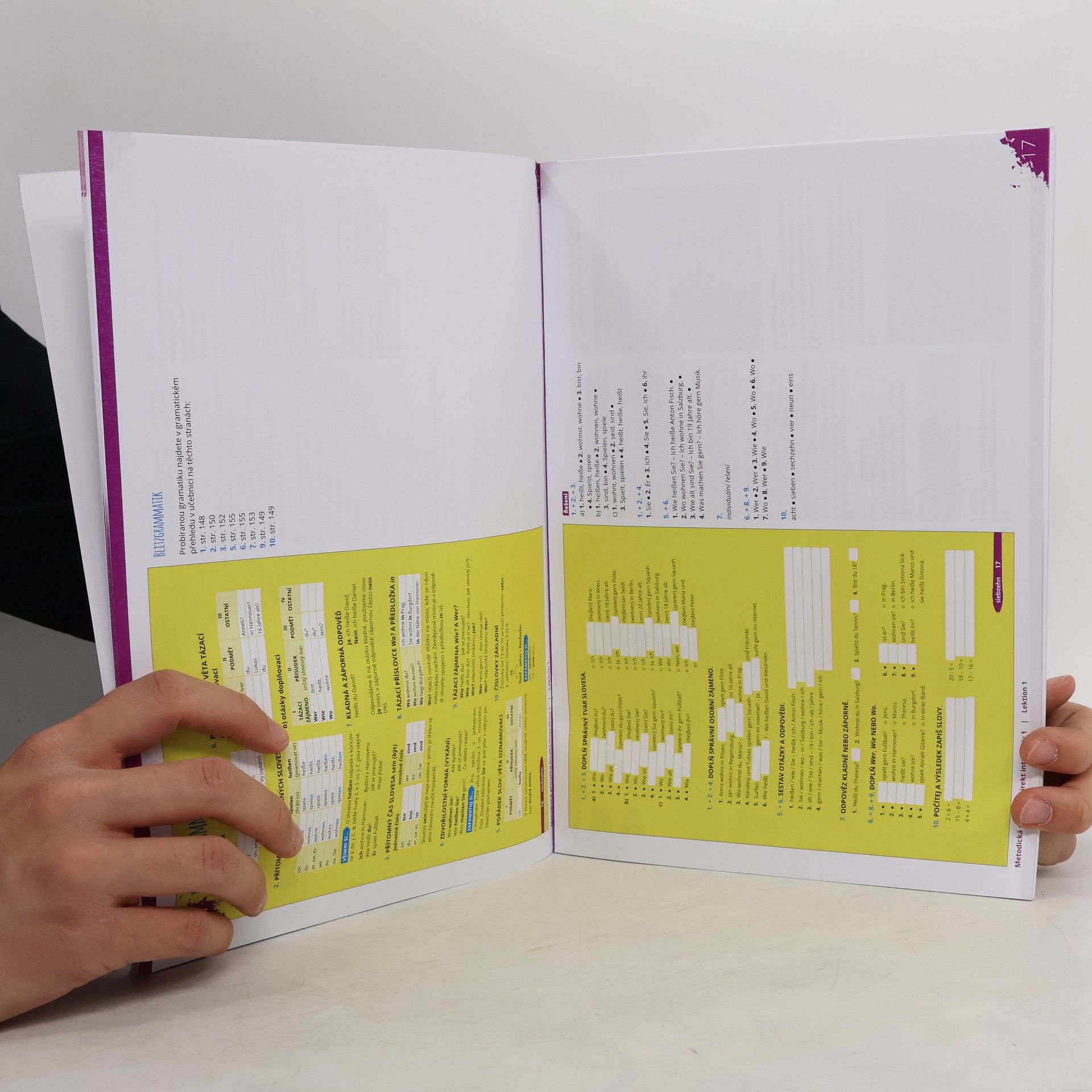 Metodická příručka pro učitele obsahuje: ? náměty na práci s každou lekcí v hodinách, doplňkové aktivity, hry ? tipy a materiály pro práci s heterogenní skupinou žáků (zvláště v 1. dílu s ohledem na skupiny, ve kterých jsou jak žáci s předchozí znalostí němčiny ze ZŠ, tak naprostí začátečníci) ? transkripci poslechových textů ? klíč ke cvičením v učebnici a pracovním sešitě ? pracovní listy a předlohy ke kopírování ? audionahrávky MP3 a videonahrávky MP4 ? pracovní listy a metodické tipy pro práci s videi ? vzorové testy a klíč k testům // Achtung: Falls auf dem Foto keine Anhänge abgebildet sind, sind diese nicht im Lieferumfang enthalten.