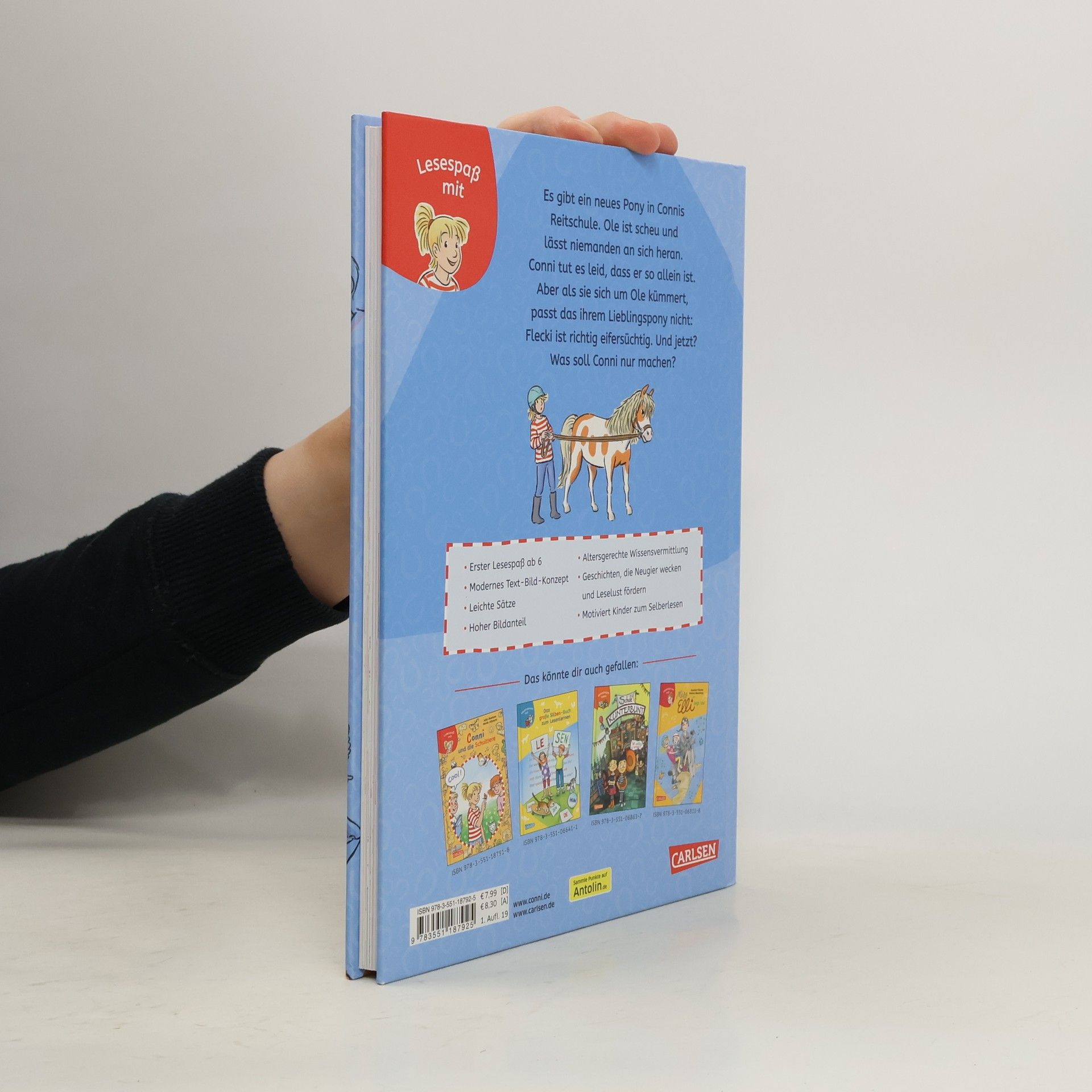 Auf dem Ponyhof gibt es ein neues Pony. Es heißt Ole, erfährt Conni. Allerdings Ole ist sehr scheu und muss allein auf der Weide stehen. Deshalb versucht Conni, sein Vertrauen zu gewinnen. Doch das mag Pony Flecki gar nicht und er wird richtig eifersüchtig. Als Conni deshalb nicht am Ausritt teilnehmen kann, macht sie die beiden Ponys ganz vorsichtig miteinander bekannt. Und siehe da – es funktioniert! Mit einem Mal sind Flecki und Ole beste Freunde. Erster Lesespaß ab 6 Modernes Text-Bild-Konzept mit farbigen Illustrationen Leichte Sätze hoher Bildanteil Altersgerechte Wissensvermittlung Geschichten, die Neugier wecken Motiviert Kinder zum Selberlesen