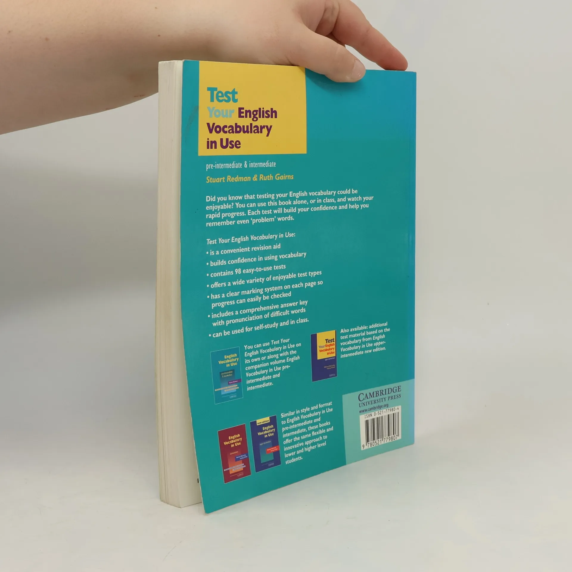 This addition to the best-selling English Vocabulary in Use series provides 100 vocabulary tests based on English Vocabulary in Use pre-intermediate and intermediate. It is a very convenient revision aid which builds confidence in using vocabulary. There is a simple scoring system on each page which helps students to measure their progress. The user-friendly answer key also includes phonetic versions of words which are difficult to pronounce. The book uses a wide range of testing techniques including: matching, labelling, recognising errors, word-building, forming word partnerships, word puzzles, ranking items, unscrambling and many more. This flexible material can either be used by learners familiar with English Vocabulary in Use or as a stand-alone for students interested in testing their vocabulary. The book is designed for self-study but can also be used in class.