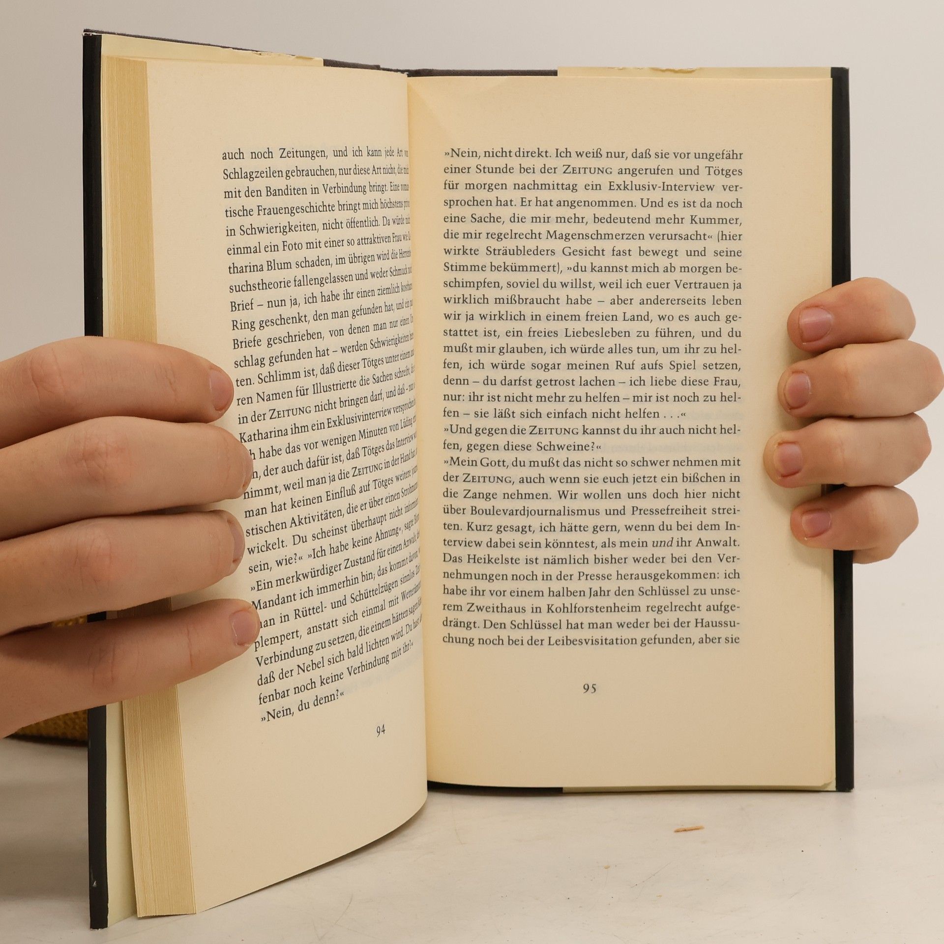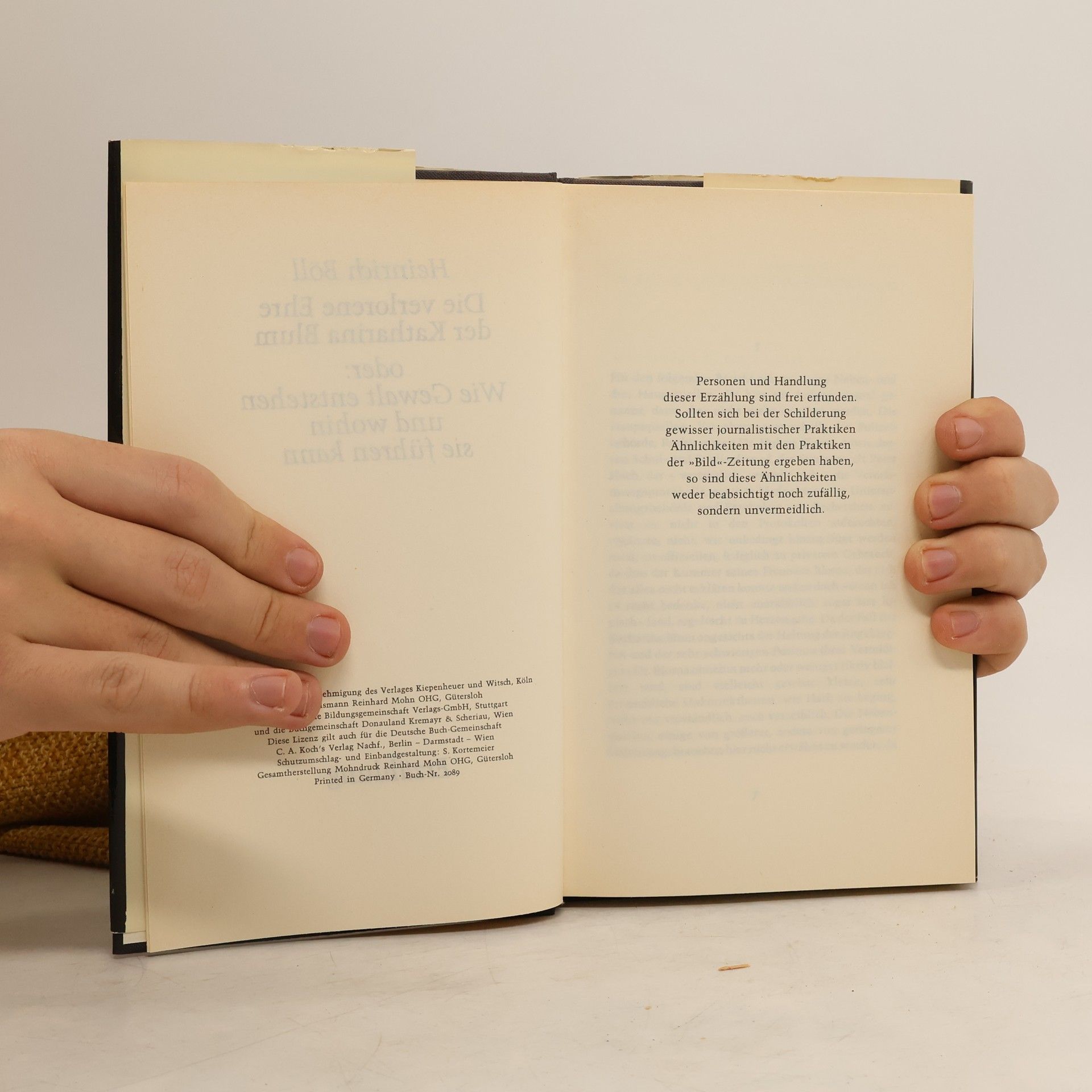 »Ähnlichkeiten mit den Praktiken der ›Bild‹-Zeitung [...] sind weder beabsichtigt noch zufällig, sondern unvermeidlich.« Aus dem Vorwort Bölls Katharina Blum ist eine junge hübsche Haushälterin, die sich eine kleine Eigentumswohnung und einen Volkswagen leisten kann. Sie hat ein heiter-bescheidenes Wesen und wird, weil sie Zudringlichkeiten der Männer verabscheut, in ihrer Umgebung die »Nonne« genannt. Diese Frau verliebt sich spontan in einen jungen Mann, einen von der Polizei gesuchten radikalen Rechtsbrecher. Sie verhilft ihm zur Flucht und gerät in den Mittelpunkt der Sensationsmache einer großen Boulevardzeitung. Die Situation eskaliert, als der Journalist Werner Tötges in ihre Wohnung kommt ...