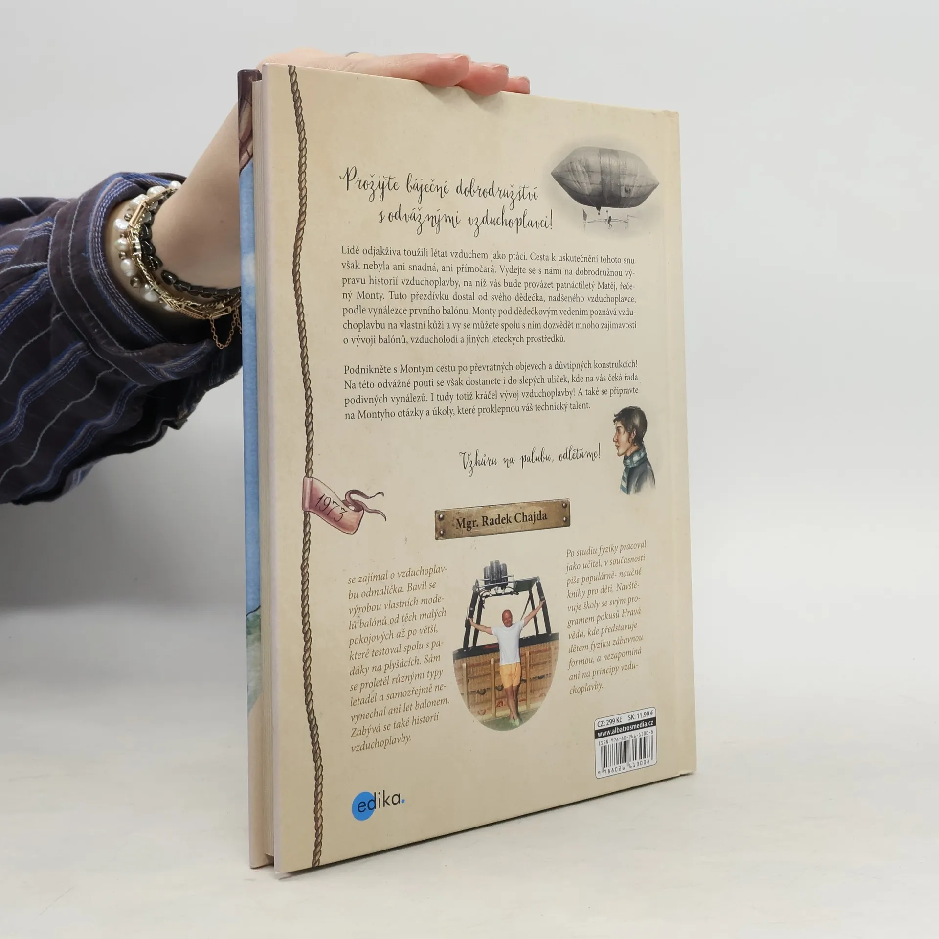 Prožijte báječné dobrodružství s odvážnými vzduchoplavci! Lidé odjakživa toužili létat vzduchem jako ptáci. Cesta k uskutečnění tohoto snu však nebyla ani snadná, ani přímočará. Vydejte se s námi na dobrodružnou výpravu historií vzduchoplavby, na níž vás bude provázet patnáctiletý Matěj, řečený Monty. Tuto přezdívku dostal od svého dědečka, nadšeného vzduchoplavce, podle vynálezce prvního balónu. Monty pod dědečkovým vedením poznává vzduchoplavbu na vlastní kůži a vy se můžete spolu s ním dozvědět mnoho zajímavostí o vývoji balónů, vzducholodí a jiných leteckých prostředků. Podnikněte s Montym cestu po převratných objevech a důvtipných konstrukcích! Na této odvážné pouti se však dostanete i do slepých uliček, kde na vás čeká řada podivných vynálezů. I tudy totiž kráčel vývoj vzduchoplavby! A také se připravte na Montyho otázky a úkoly, které proklepnou váš technický talent. Vzhůru na palubu, odlétáme!
