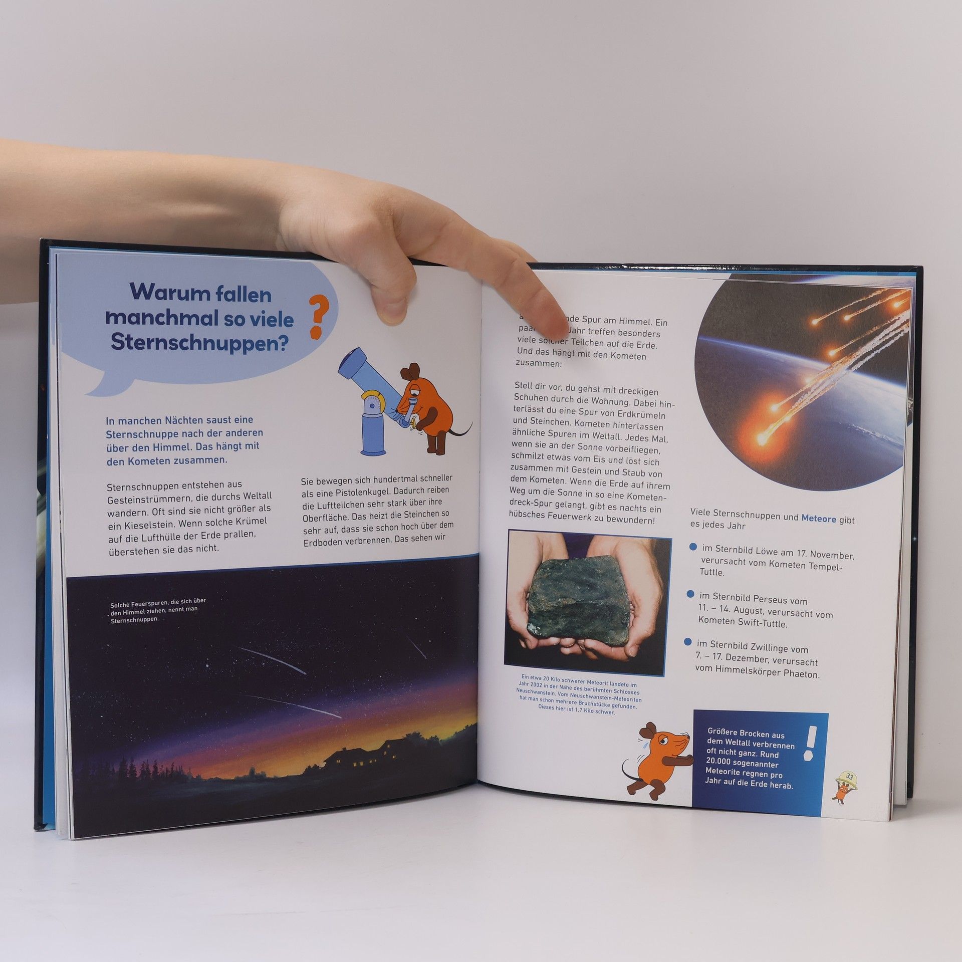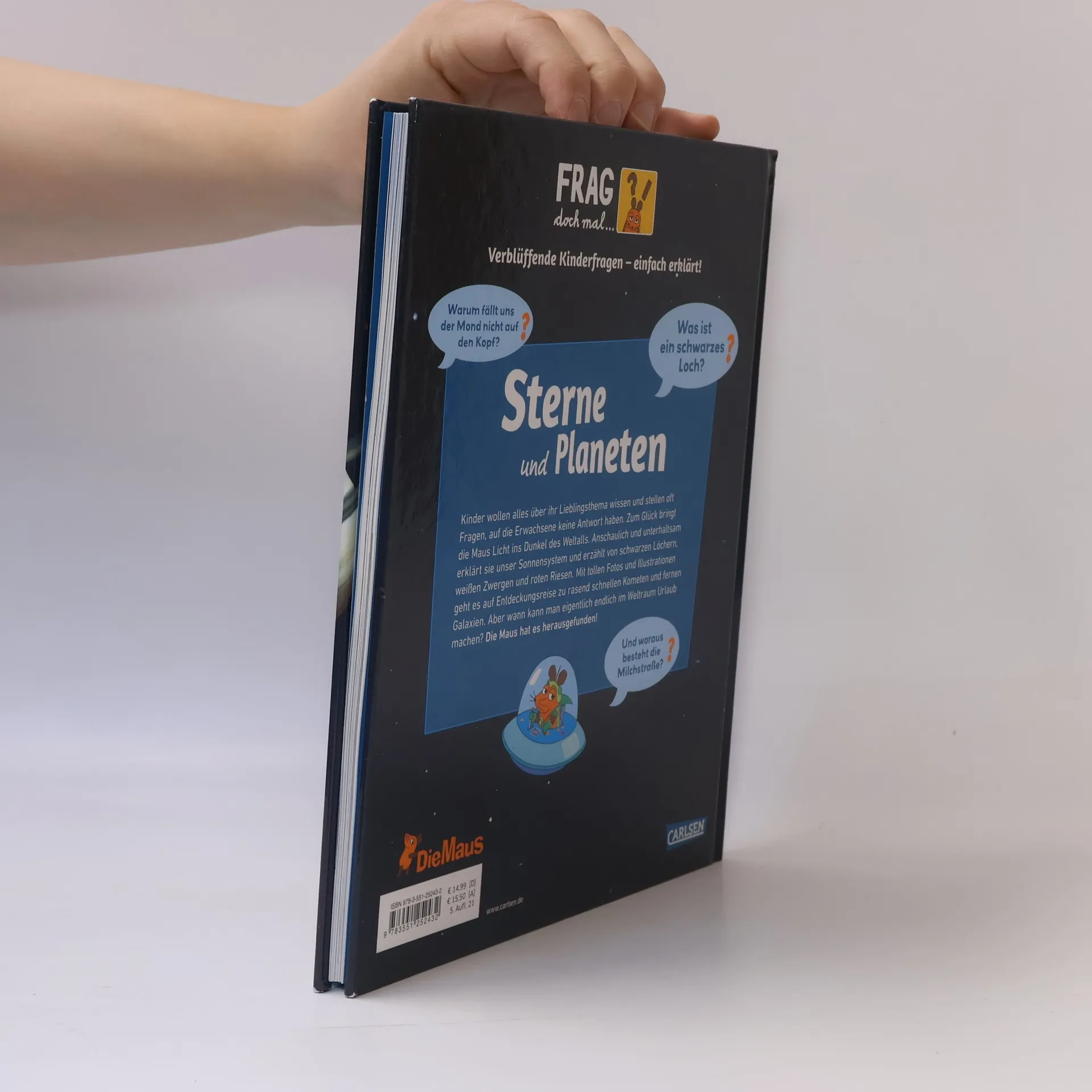 Antworten auf die wichtigsten Kinderfragen: Die Sachbuchreihe mit der Maus *** - Warum fällt uns der Mond nicht auf den Kopf? - Was ist ein schwarzes Loch? - Und woraus besteht die Milchstraße? Kinder wollen alles über ihr Lieblingsthema wissen und stellen oft Fragen, auf die Erwachsene keine Antwort haben. Zum Glück kann die Maus auch komplexe Sachverhalte kindgerecht und unterhaltsam erklären. Und genau das bietet diese Sachbuchreihe: kluge Antworten auf verblüffende Kinderfragen – spielerisch, sachlich fundiert und immer mit dem besonderen Maus-Faktor!