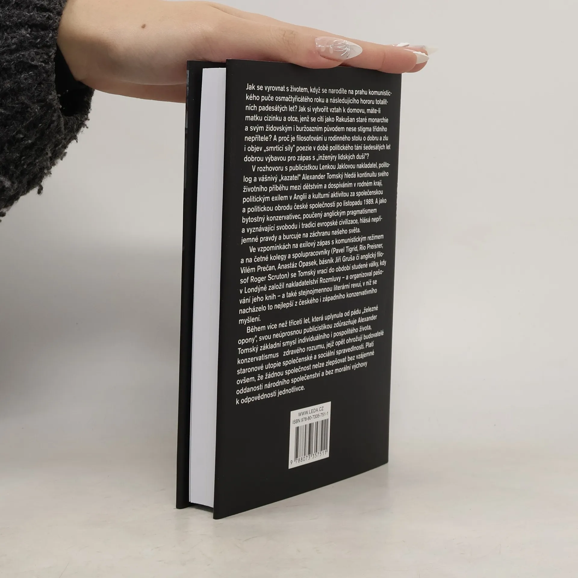 Jak se vyrovnat s životem, když se narodíte na prahu komunistického puče a prožíváte hrůzy totalitních padesátých let? Jak si vytvořit vztah k domovu s matkou cizinkou a otcem, který nese stigma třídního nepřítele? A proč je filosofování o dobru a zlu u rodinného stolu v šedesátých letech cennou výbavou pro boj s „inženýry lidských duší“? V rozhovoru s publicistkou Lenkou Jaklovou hledá Alexander Tomský kontinuitu svého příběhu mezi dětstvím, politickým exilem v Anglii a kulturní aktivitou po listopadu 1989. Jako konzervativec, ovlivněný anglickým pragmatismem, hlásá pravdy a burcuje na záchranu našeho světa. Ve vzpomínkách na exilový boj s komunistickým režimem a na kolegy jako Pavel Tigrid či Roger Scruton se Tomský vrací do období studené války, kdy v Londýně založil nakladatelství Rozmluvy a organizoval pašování knih. Během více než třiceti let od pádu „železné opony“ zdůrazňuje Tomský smysl individuálního i pospolitého života a konzervatismus zdravého rozumu, který je ohrožován budovateli utopie sociální spravedlnosti. Žádnou společnost nelze zlepšovat bez oddanosti národnímu společenství a morální výchovy k odpovědnosti jednotlivce. Když pochopíme život jako dar a druhého člověka jako příležitost, stávají se obyčejné věci neobyčejnými.