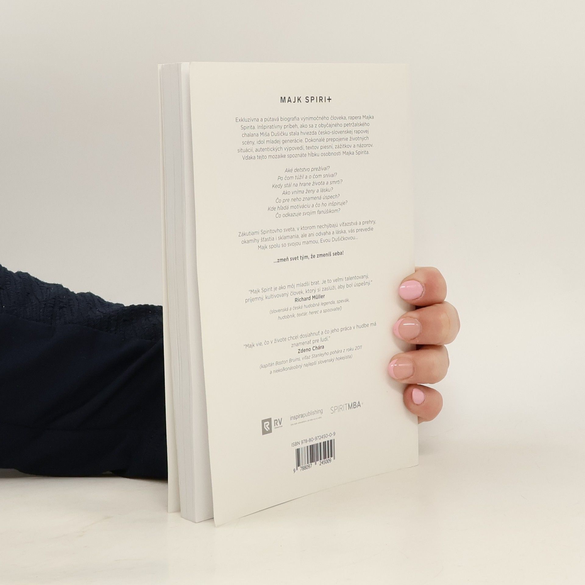 Exkluzívna a pútavá biografia výnimočného človeka, rapera Majka Spirita. Inšpiratívny príbeh, ako sa z obyčajného petržalského chalana Miša Dušičku stala hviezda česko-slovenskej rapovej scény, idol mladej generácie. Dokonalé prepojenie životných situácií, autentických výpovedí, textov piesní, zážitkov a názorov. Vďaka tejto mozaike spoznáte hĺbku osobnosti Majka Spirita. Aké detstvo prežíval? Po čom túžil a o čom sníval? Kedy stál na hrane života a smrti? Ako vníma ženy a lásku? Čo pre neho znamená úspech? Kde hľadá motiváciu a čo ho inšpiruje? Čo odkazuje svojim fanúšikom? Zákutiami Spiritovho sveta, v ktorom nechýbajú víťazstvá a prehry, okamihy šťastia i sklamania, ale ani odvaha a láska, vás prevedie Majk spolu so svojou mamou Evou Dušičkovou… … zmeň svet tým, že zmeníš seba!
