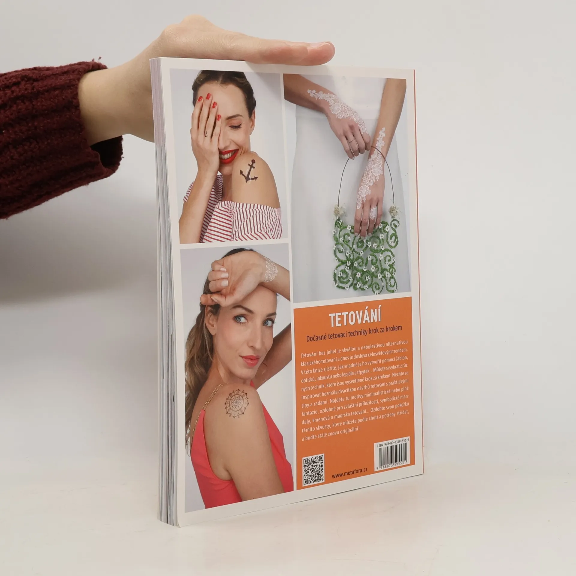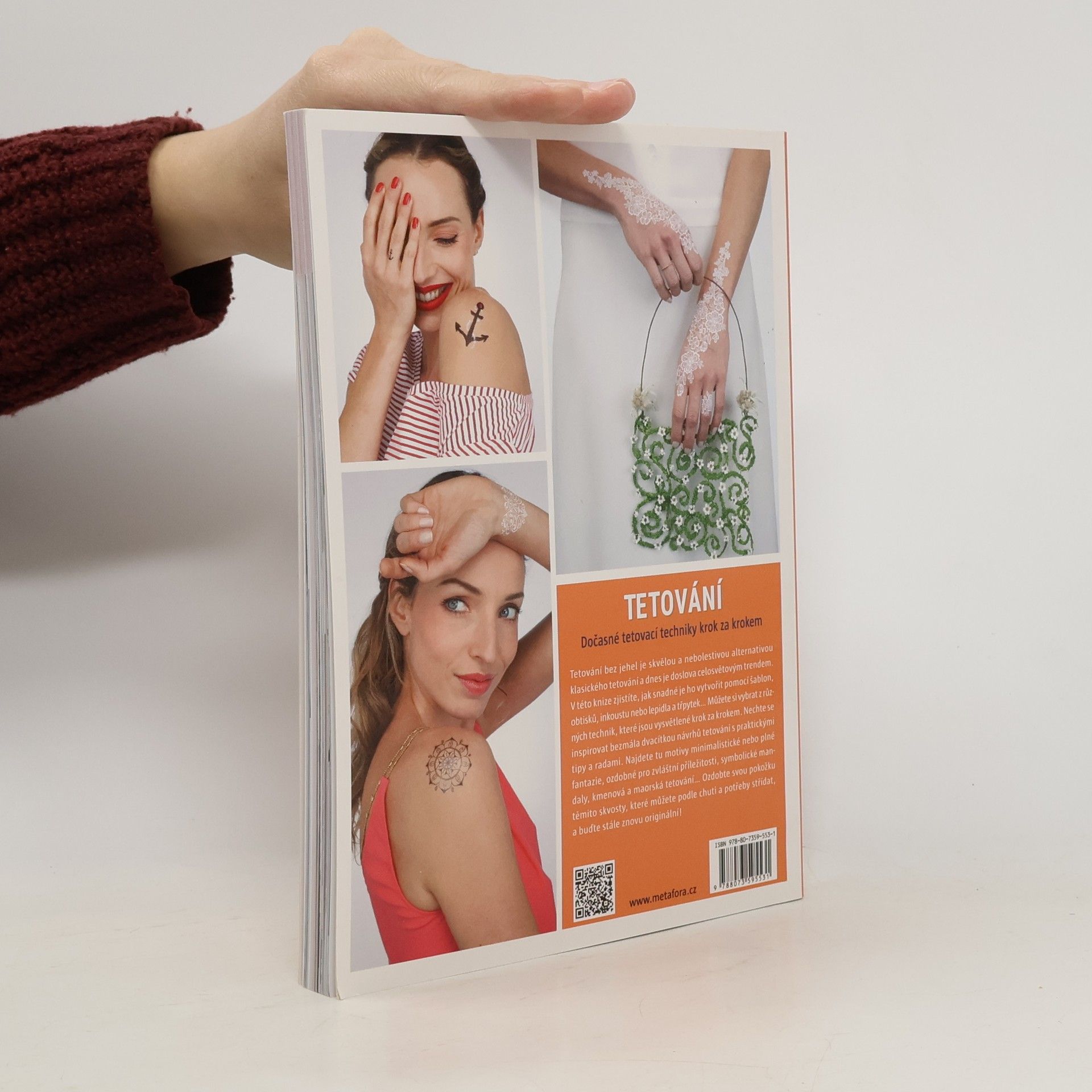 Henou, obtisky, lepidlem, inkoustem přes šablonu nebo kreslené od ruky. V této knize zjistíte, jak snadno ho vytvoříte pomocí šablon, obtisků, inkoustu nebo lepidla a třpytek… Můžete si vybrat z různých technik, které jsou srozumitelně vysvětlené krok za krokem. Nechte se inspirovat skoro dvacítkou návrhů tetování s praktickými tipy a radami. Najdete tu motivy minimalistické nebo plné fantazie, ozdobné pro zvláštní příležitosti, symbolické mandaly, kmenová a maorská tetování… Navíc: tetování bez jehel je dočasné a nezávazné. Vytetované šperky, obrazce nebo prohlášení na své kůži můžete podle chuti a potřeby střídat, a tak být stále znovu originální!