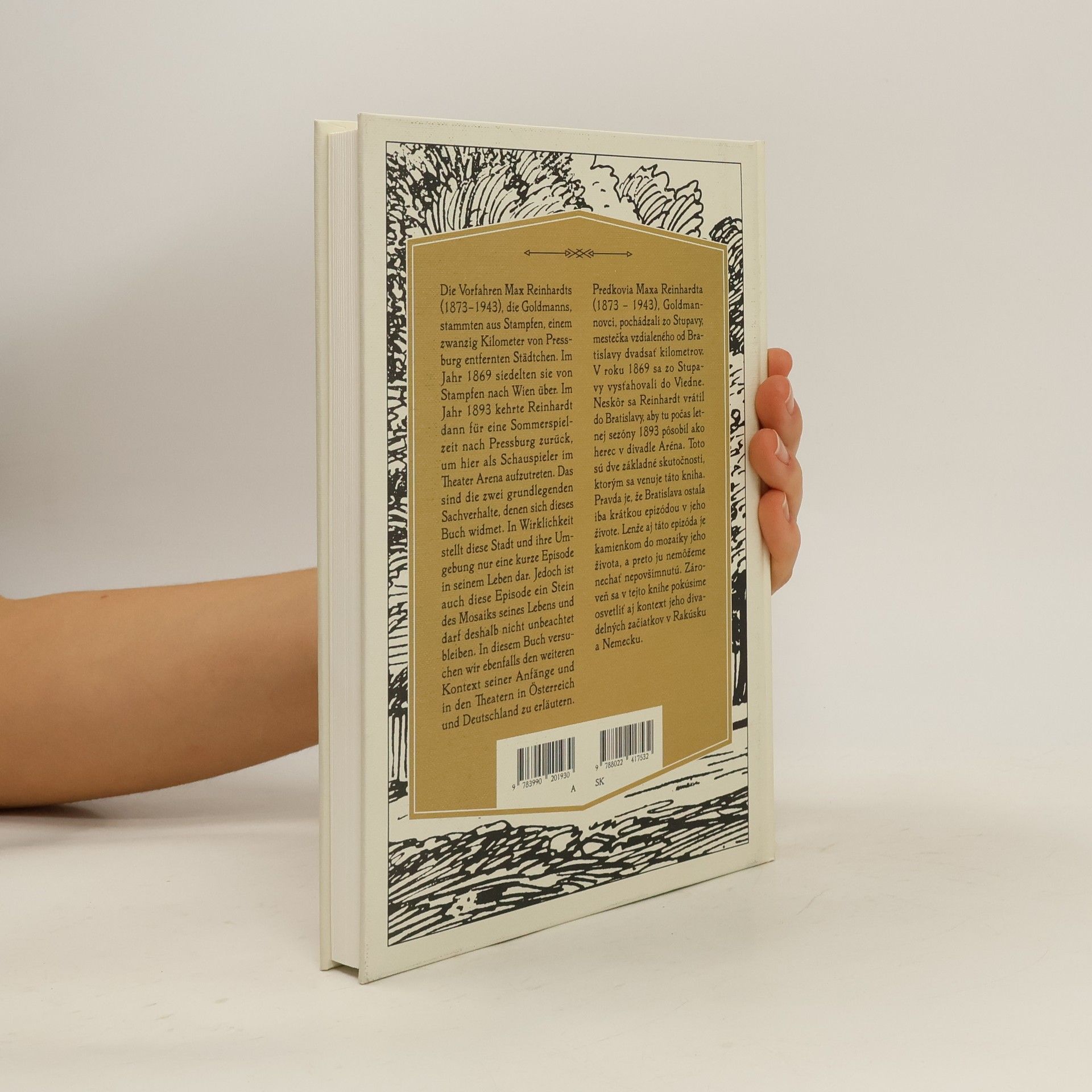 Dvojjazyčná (slovensko-nemecká) publikácia mapuje prvé obdobie života a diela významného nemecky hovoriaceho herca a režiséra Maxa Reinhardta, ktorého predkovia sa narodili na Slovensku a on tu strávil krátku časť života, aj keď väčšinu prežil v Rakúsku, Nemecku či USA. Predkovia Maxa Reinhardta (9. septembra 1873 Baden, Rakúsko 31. októbra 1943 New York, USA) Goldmannovci pochádzali zo Stupavy, mestečka vzdialeného od Bratislavy dvadsať kilometrov. Preukázateľne tam žili ich tri generácie. V roku 1869 sa zo Stupavy vysťahovali do Viedne. Neskôr sa Reinhardt vrátil na letnú sezónu 1893 do Bratislavy, aby tu vystupoval ako herec v divadle Aréna, ktoré stálo na pravom brehu Dunaja v Petržalke. Toto sú dve základné skutočnosti, ktorým sa venuje táto kniha. Pre Reinhardta to neboli jediné dotyky s Bratislavou. Jeho Theater in der Josefstadt tu pravidelne vystupoval. Niekoľko rokov sa v Bratislave ťahal jeho rozvodový proces. Ale pravda je, že toto mesto ostalo iba krátkou epizódou v jeho živote. Umelecké a podnikateľské aktivity vo Viedni, Salzburgu, Berlíne a v USA ďaleko presiahli to, čo vykonal v Bratislave. Lenže aj táto epizóda je kamienkom do mozaiky jeho života, a preto ju nemožno nechať nepovšimnutú. Zároveň sa v tejto knihe autori pokúšajú osvetliť aj širší kontext jeho divadelných začiatkov v Rakúsku a Nemecku.
