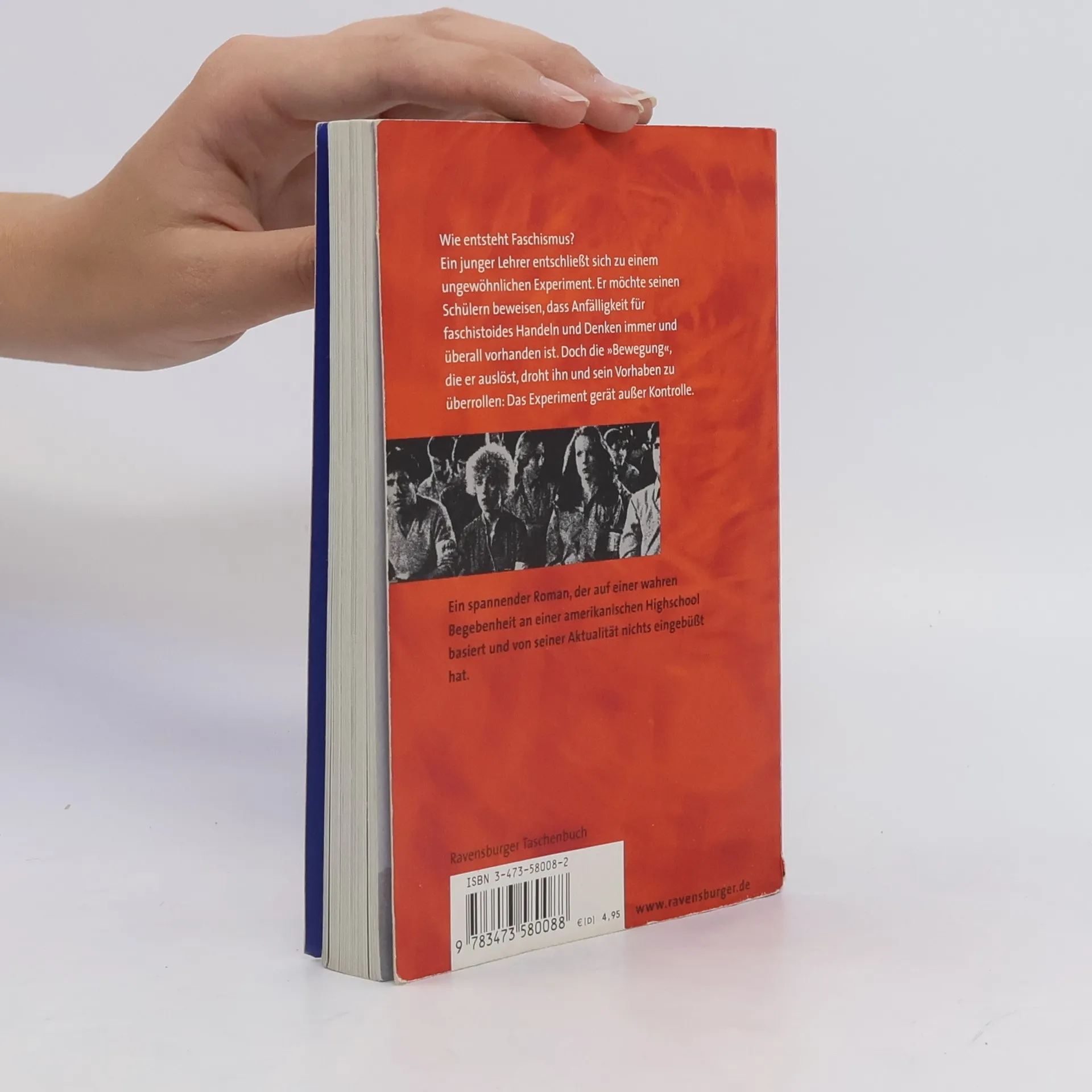 Der Jugendbuchbestseller zum Thema Rechtsextremismus, Faschismus und Nationalsozialismus Wie entsteht Faschismus? Als es im Geschichtsunterricht um Nationalsozialismus und Rechtsextremismus geht, beschließt ein junger Lehrer, ein ungewöhnliches Experiment durchzuführen. Er möchte seinen Schülern beweisen, dass Anfälligkeit für faschistoides Handeln und Denken nicht etwas ist, das nur andere Menschen betrifft – Faschismus ist hier mitten unter uns und in jedem von uns. Doch die „Bewegung“, die er auslöst, droht ihn und sein Vorhaben zu überrollen: Das Experiment gerät außer Kontrolle. Wichtig für den Schulunterricht: Seitenzählung unverändert! Morton Rhues Klassiker DIE WELLE beschreibt eindringlich und gegenwartsbezogen wie leicht Menschen verführt, manipuliert und instrumentalisieren werden können. Der Roman basiert auf wahren Begebenheiten an einer Highschool im kalifornischen Palo Alto. Zu diesem Buch gibt es „Materialien zur Unterrichtspraxis“ der Ravensburger Verlag GmbH.