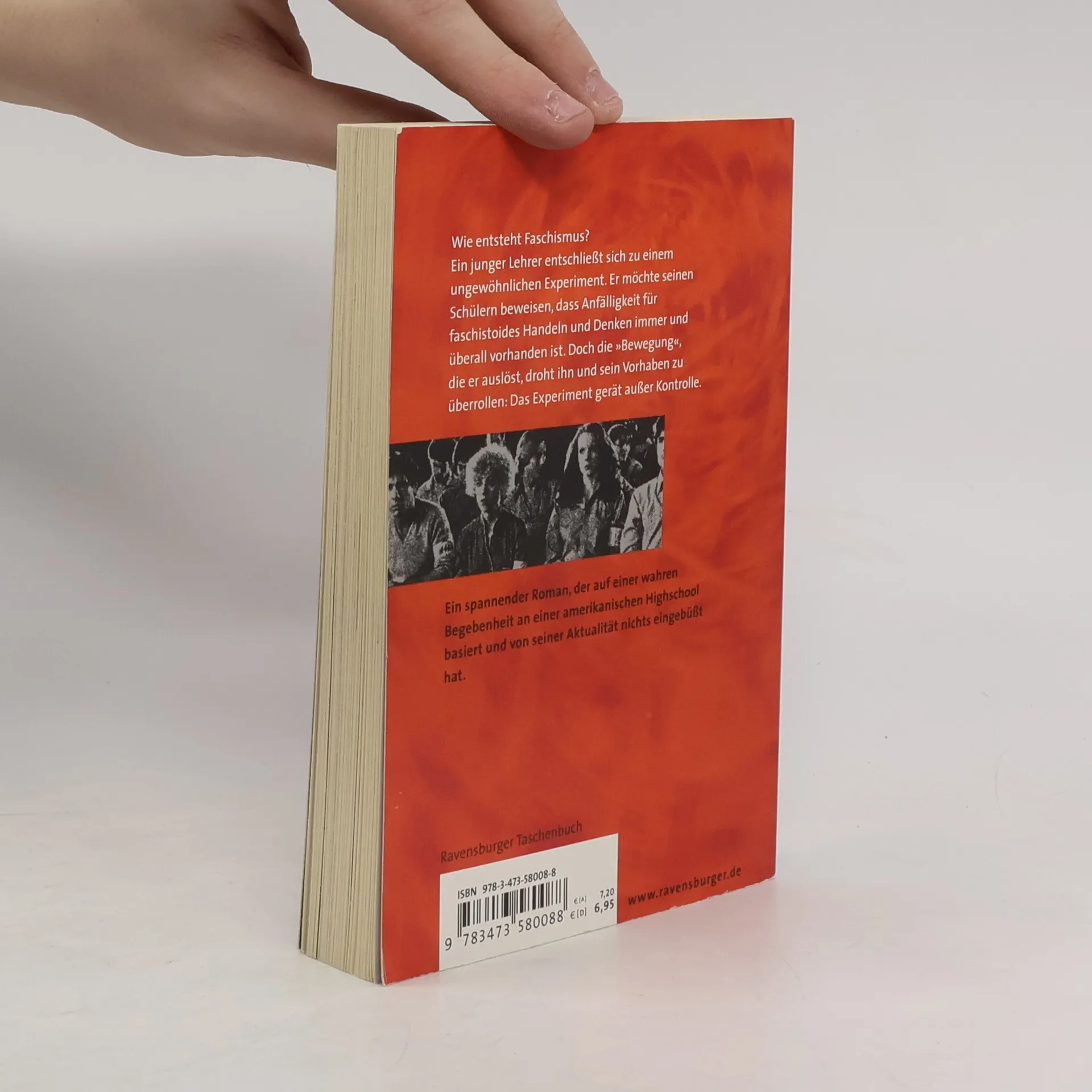 Der Jugendbuchbestseller zum Thema Rechtsextremismus, Faschismus und Nationalsozialismus Wie entsteht Faschismus? Als es im Geschichtsunterricht um Nationalsozialismus und Rechtsextremismus geht, beschließt ein junger Lehrer, ein ungewöhnliches Experiment durchzuführen. Er möchte seinen Schülern beweisen, dass Anfälligkeit für faschistoides Handeln und Denken nicht etwas ist, das nur andere Menschen betrifft – Faschismus ist hier mitten unter uns und in jedem von uns. Doch die „Bewegung“, die er auslöst, droht ihn und sein Vorhaben zu überrollen: Das Experiment gerät außer Kontrolle. Wichtig für den Schulunterricht: Seitenzählung unverändert! Morton Rhues Klassiker DIE WELLE beschreibt eindringlich und gegenwartsbezogen wie leicht Menschen verführt, manipuliert und instrumentalisieren werden können. Der Roman basiert auf wahren Begebenheiten an einer Highschool im kalifornischen Palo Alto. Zu diesem Buch gibt es „Materialien zur Unterrichtspraxis“ der Ravensburger Verlag GmbH.