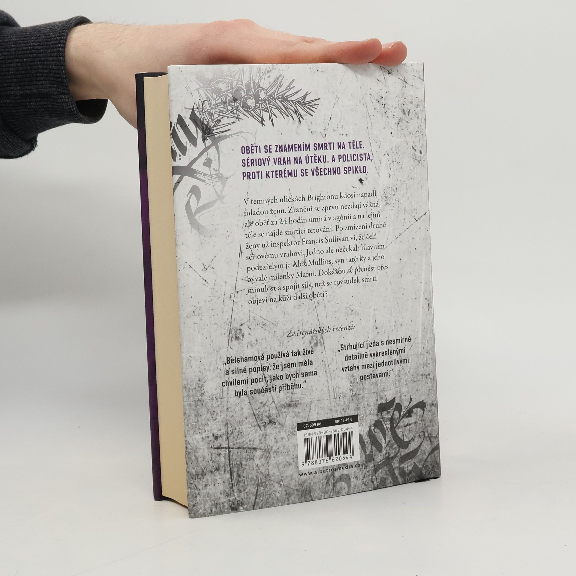 Jeho tetování je rozsudkem smrti. Od autorky bestselleru Tatérka. V temných uličkách Brightonu kdosi napadl mladou ženu. Zranění se zprvu nezdají vážná, ale oběť za 24 hodin umírá v agónii a na jejím těle se najde smrtící tetování. Po zmizení druhé ženy už inspektor Francis Sullivan ví, že čelí sériovému vrahovi. Jedno ale nečekal: hlavním podezřelým je Alex Mullins, syn tatérky a jeho bývalé milenky Marni. Dokážou se přenést přes minulost a spojit síly, než se rozsudek smrti objeví na kůži další oběti?
