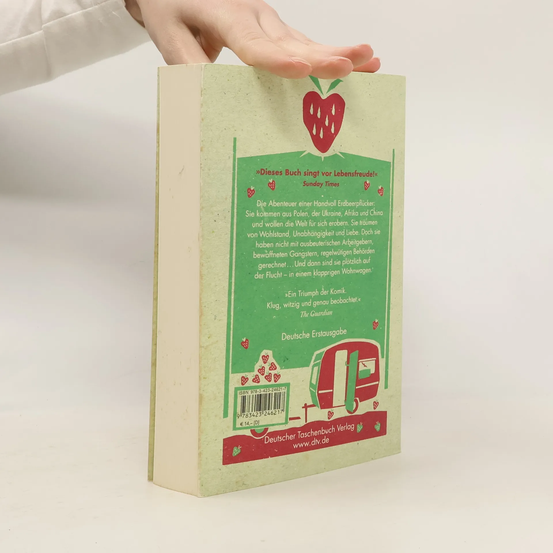 Die Abenteuer einer Truppe ausländischer Erdbeerpflücker in England. Sie kommen aus Polen, der Ukraine, Afrika und China, haben alle gänzlich verschiedene Lebenswege und sehr bestimmte Ansichten darüber, was im Leben wichtig ist. Irina ist eine Tochter aus gutem ukrainischem Hause, will ihr (hervorragendes) Englisch verbessern und die große Liebe mit einem romantischen Engländer finden. Andrij kommt aus einer ganz anderen Ukraine: Er ist der Sohn eines Bergarbeiters und will keinesfalls so enden wie sein Vater. Dann sind da die Polen: der Bob-Dylan-Fan Tomasz, dessen Turnschuhe bald zu einer Geißel für seine männlichen Kollegen und Mitbewohner werden, Jola, die erfahrene Pflückerin mit der üppigen Figur, und ihre religiöse Nichte Marta, die so erstaunlich gut kochen kann. Dazu zwei Chinesinnen und Emanuel, ein Teenager aus Malawi, der in England seine Schwester suchen will und mit großen Augen diese merkwürdige Welt bestaunt. Doch die ist voller Gefahren, in Gestalt von erpresserischen Arbeitgebern, regelwütigen Behörden und bewaffneten Gangstern. Als dann der ausbeuterische Erdbeerfarmer überfahren wird, ergreift die ganze Mannschaft in einem klapprigen Wohnwagen die Flucht. Was sie bei ihrer Fahrt durch England erleben, kann sich so nur Marina Lewycka (oder vielleicht das Leben) ausdenken #133;