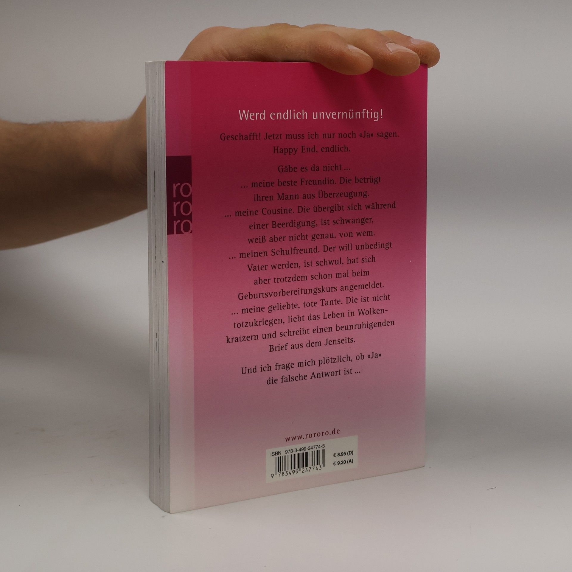 Werd endlich unvernünftig!Geschafft! Jetzt muss ich nur noch «ja» sagen. Happy End, endlich. Gäbe es da nicht ...… meine beste Freundin. Die betrügt ihren Mann aus Überzeugung.… meine Cousine. Die übergibt sich während einer Beerdigung, ist schwanger, weiß aber nicht genau, von wem.… meinen Schulfreund. Der will unbedingt Vater werden, ist schwul, hat sich aber trotzdem schon mal beim Geburtsvorbereitungskurs angemeldet.… meine geliebte, tote Tante. Die ist nicht totzukriegen, liebt das Leben in Wolkenkratzern und schreibt einen beunruhigenden Brief aus dem Jenseits.Und ich frage mich plötzlich, ob «Ja» die falsche Antwort ist …