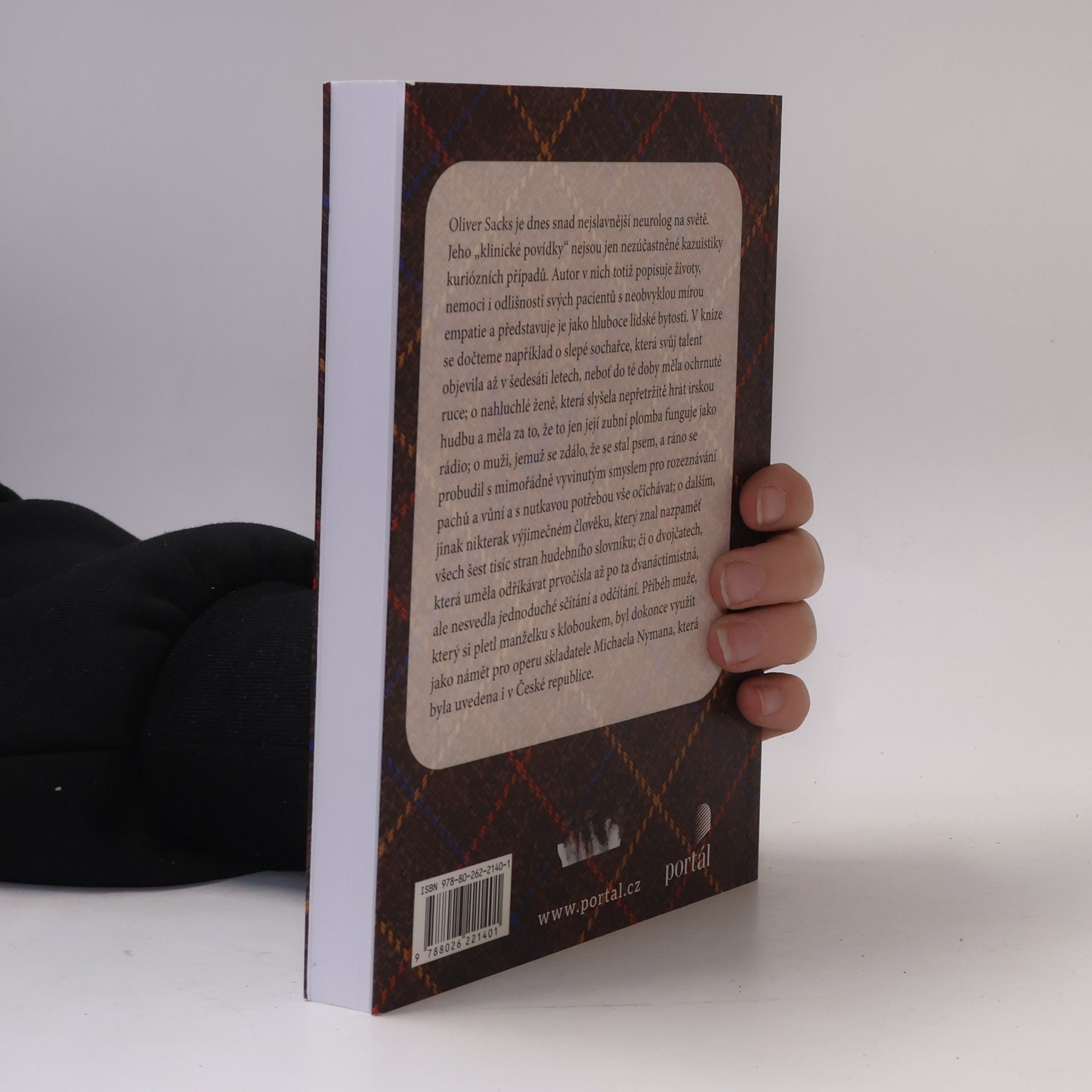 Oliver Sacks je dnes snad nejslavnější neuropsycholog na světě. Jeho „klinické povídky“ nejsou jen nezúčastněné kazuistiky kuriózních případů. Autor v nich totiž popisuje životy, nemoci i odlišnosti svých pacientů s neobvyklou mírou empatie a představuje je jako hluboce lidské bytosti. V knize se dočteme například o slepé sochařce, která svůj talent objevila až v šedesáti letech, neboť do té doby měla ochrnuté ruce, o nahluchlé ženě, která slyšela nepřetržitě hrát irskou hudbu a měla za to, že to jen její zubní plomba funguje jako krystalka, o muži, jemuž se zdálo, že se stal psem, a ráno se probudil s mimořádně vyvinutým smyslem pro rozeznávání pachů a vůní a s nutkavou potřebou vše očichávat, o dalším, jinak nikterak výjimečném člověku, který znal nazpaměť všech šest tisíc stran hudebního slovníku, či o dvojčatech, která uměla odříkávat prvočísla až po ta dvanáctimístná, ale nesvedla jednoduché sčítání a odčítání. Příběh muže, který si pletl manželku s kloboukem, byl dokonce využit jako námět pro operu skladatele Michaela Nymana, která byla uvedena i v České republice.