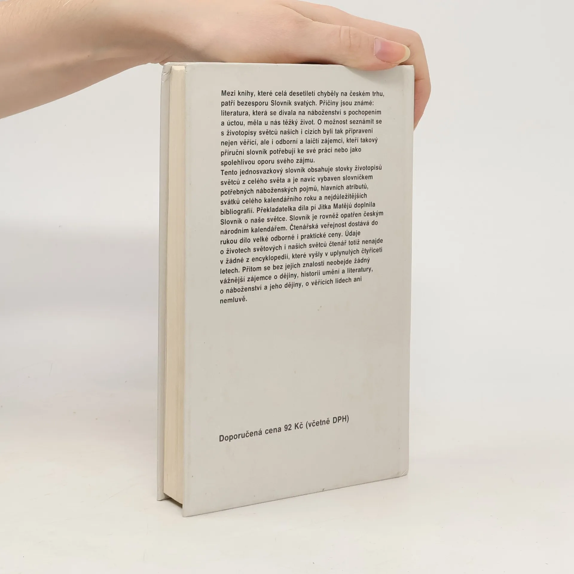 Jednosvazkový slovník obsahující stovky životopisů světců z celého světa, překladatelkou rozšířený o české světce a opatřený rovněž českým národním kalendářem, který sestavil Petr Svoboda.