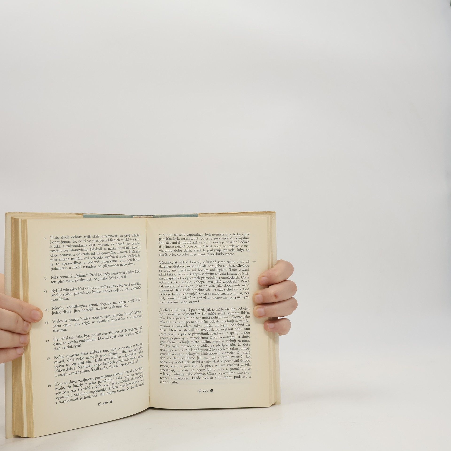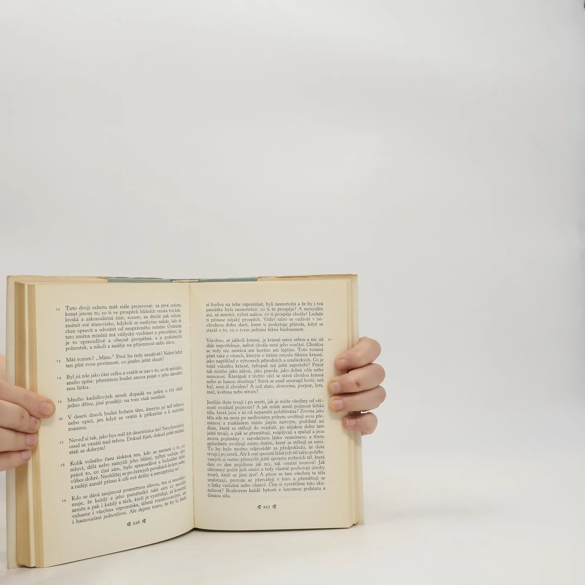 Sedmý list, Platón – Činy božského Augusta, Augustus – Život, Flavius Josephus – Athénské radě a lidu, Iulianus – O snu, Lúkianos – Životopis, neboli, O vlastním osudu, Libanios – Hovory k sobě, Marcus Aurelius Autobiografická díla významných představitelů starověkého písemnictví, uveřejněná v tomto svazku, reprezentují mj. Činy božského Augusta (líčení prvního římského císaře o tom, co vykonal pro stát), vlastní životopis židovského historika a politika Flavia Josepha, dopis císaře Juliána Athénám s výraznými autobiografickými prvky aj. Nejobsáhlejším dílem jsou slavné Hovory k sobě, jejichž autorem je římský císař Marcus Aurelius. Životopisný charakter má pouze první kniha, ostatních jedenáct obsahuje císařovy úvahy o životě, jeho smyslu a jistotách.