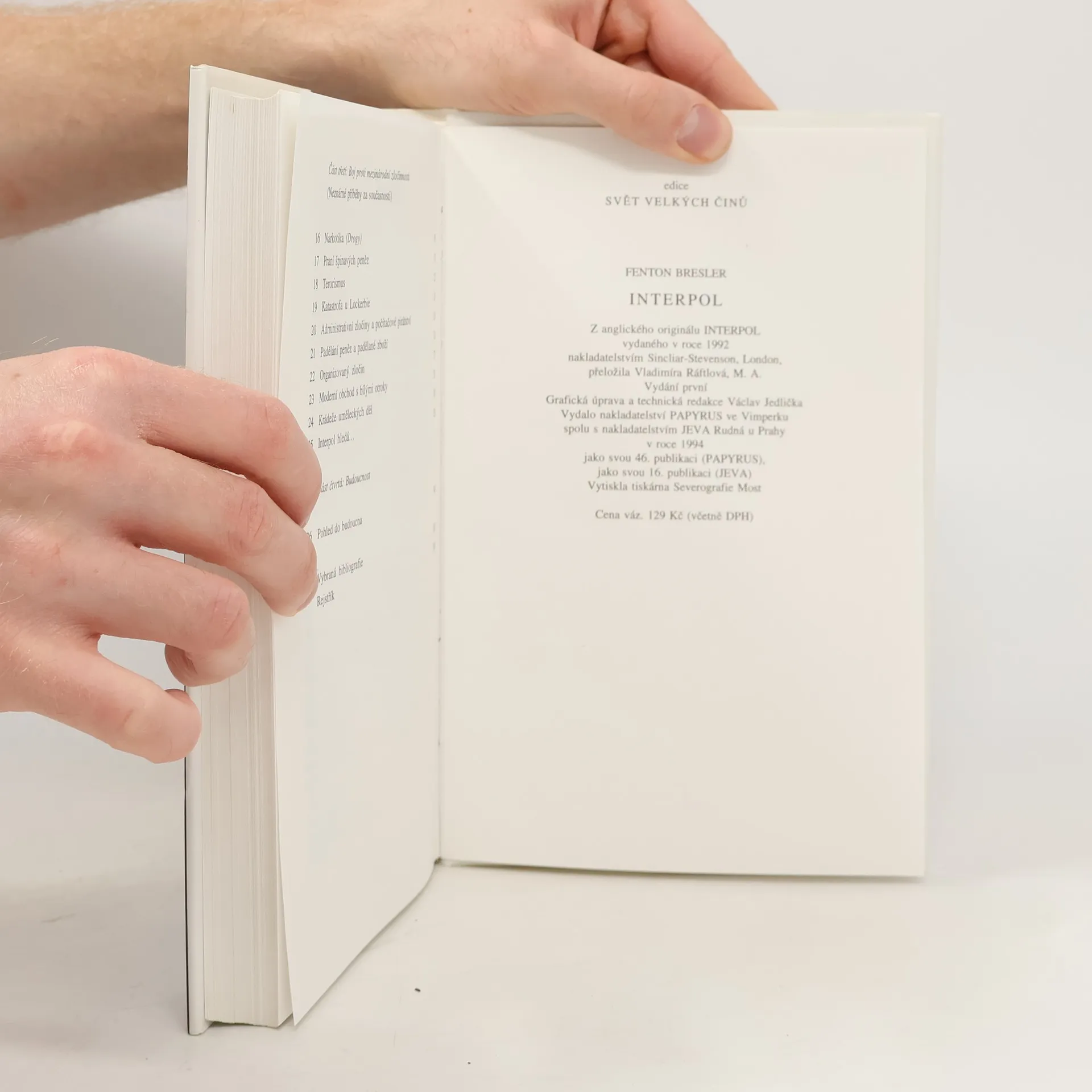 Kniha přináší pohled do historie Interpolu, mezinárodní policejní organizace. Pojednává o jeho vývoji, boji proti mezinárodní zločinnosti, o statečnosti policistů světa při stíhání brutálních mafiánských gangsterů, kolumbijských drogových kartelů, nebezpečných extremistů mezinárodního terorismu aj. O temných letech, kdy Interpol padl do rukou Gestapa a jeho znovuzrození od roku 1946 po současnost.... celý text