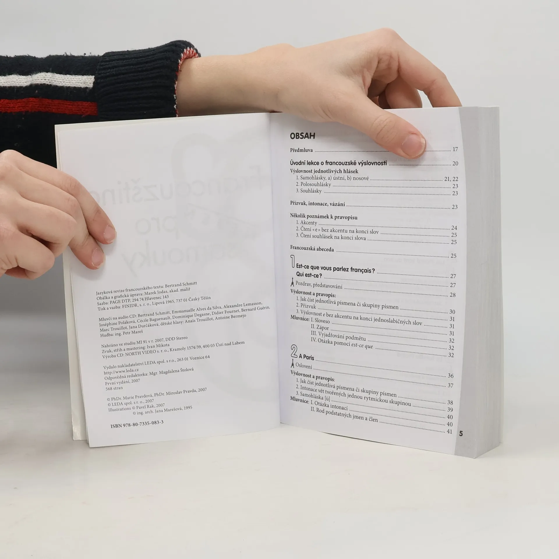 Aktualizovaná a doplněná verze oblíbené učebnice určené samoukům, účastníkům jazykových kurzů, studentům i „věčným“ začátečníkům, kteří si potřebují osvěžit své znalosti. Učebnice má 35 lekcí a každá obsahuje úvodní text, slovíčka, frazeologismy i francouzské reálie spjaté s každodenním životem. Následuje mluvnická část, na niž navazují cvičení. Výslovnost a pravopis jsou probírány v prvních 15 lekcích, každý fonetický jev je důkladně procvičen. Součástí učebnice je jednak brožura s klíčem ke cvičením a francouzsko-českým slovníčkem, jednak dvě audio CD, na nichž rodilí mluvčí nahráli úvodní texty, dialogy, všechna fonetická a vybraná mluvnická cvičení. Pokud uživatel poctivě prostuduje celou učebnici, měly by jeho jazykové znalosti odpovídat nejlepšímu maturitnímu průměru.