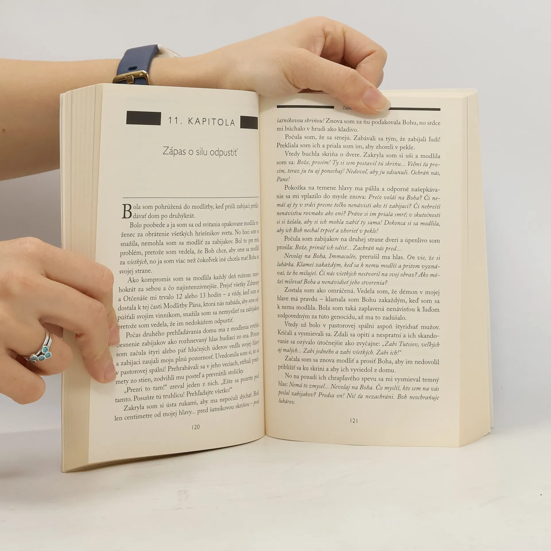 Immaculée Ilibagiza vyrastala v krajine, ktorú mala rada, s milovanou rodinou. V roku 1994 sa však v Rwande rozpútala krvavá genocída a Immaculéin dovtedajší život sa rozbil na márne kúsky. Takmer všetci členovia Immaculéinej rodiny boli brutálne zavraždení počas trojmesačného besnenia, ktoré si vyžiadalo životy asi milióna Rwanďanov. Immaculée tento masaker prežila za neuveriteľných okolností. 91 dní sa spolu s ďalšími siedmimi ženami skrývala v maličkej kúpeľni v dome miestneho pastora, zatiaľ čo na nich poľovali stovky sfanatizovaných zabijakov vyzbrojených mačetami. Pozoruhodný bestseller teraz vychádza s novým doslovom a Immaculée v ňom pridáva spomienky na dvadsať rokov, ktoré uplynuli od rwandskej genocídy. Je to pohľad nielen na zmeny v jej osobnom živote, ale aj na zmeny v živote krajiny, v ktorej sa tie strašné udalosti udiali.