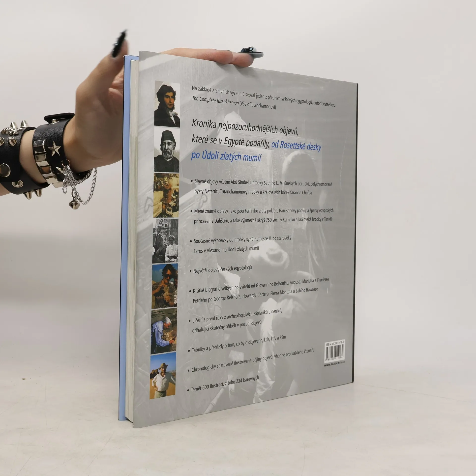 Příběh o tom, jak byl starověký Egypt odhalen světu – velkolepý sled skvělých objevů a oslnivých pokladů. Bohatě ilustrovaná kronika vyzdvihuje vše významné a fascinující, co se od roku 1799, kdy byla Napoleonovou expedicí objevena Rosettská deska, do dnešních časů – dnů vykopávek Záhího Hawásse v Údolí zlatých mumií – v egyptské archeologii odehrálo a představuje tak vynikající všeobecný přehled o jedné výjimečné civilizaci. Všechny tyto objevy jsou oživeny výňatky ze zápisníků a deníků výkopců. Tato líčení z první ruky odhalují skutečný příběh v pozadí objevů. Nicholas Reeves odhaluje překvapivé detaily a také umožňuje nahlédnout do nitra osobností a do politického zákulisí oněch časů. Nevynechává ani nejvýznamnější objevy českých archeologů.