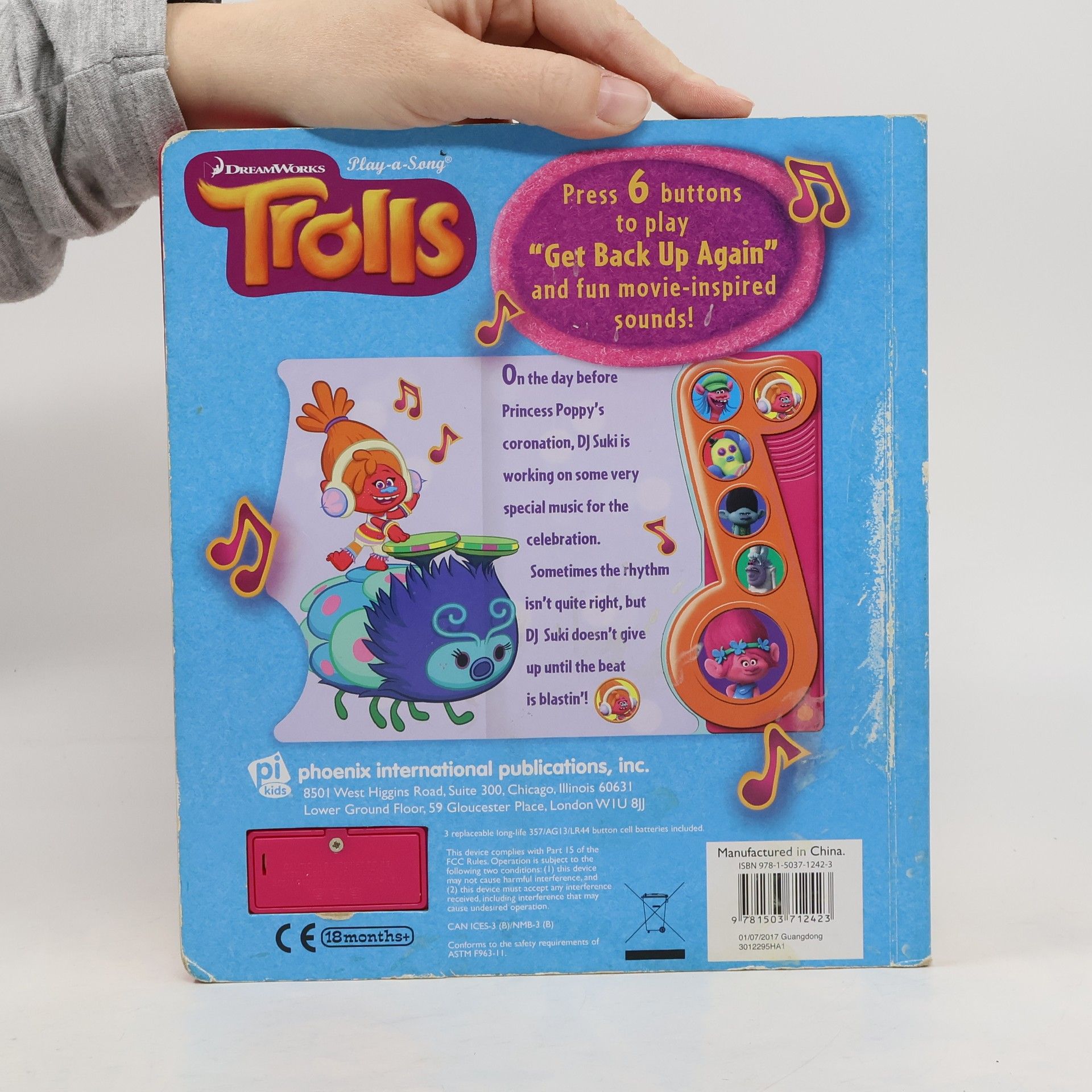 "Press six buttons to play "Get Back Up Again" and fun movie-inspired sounds!"
