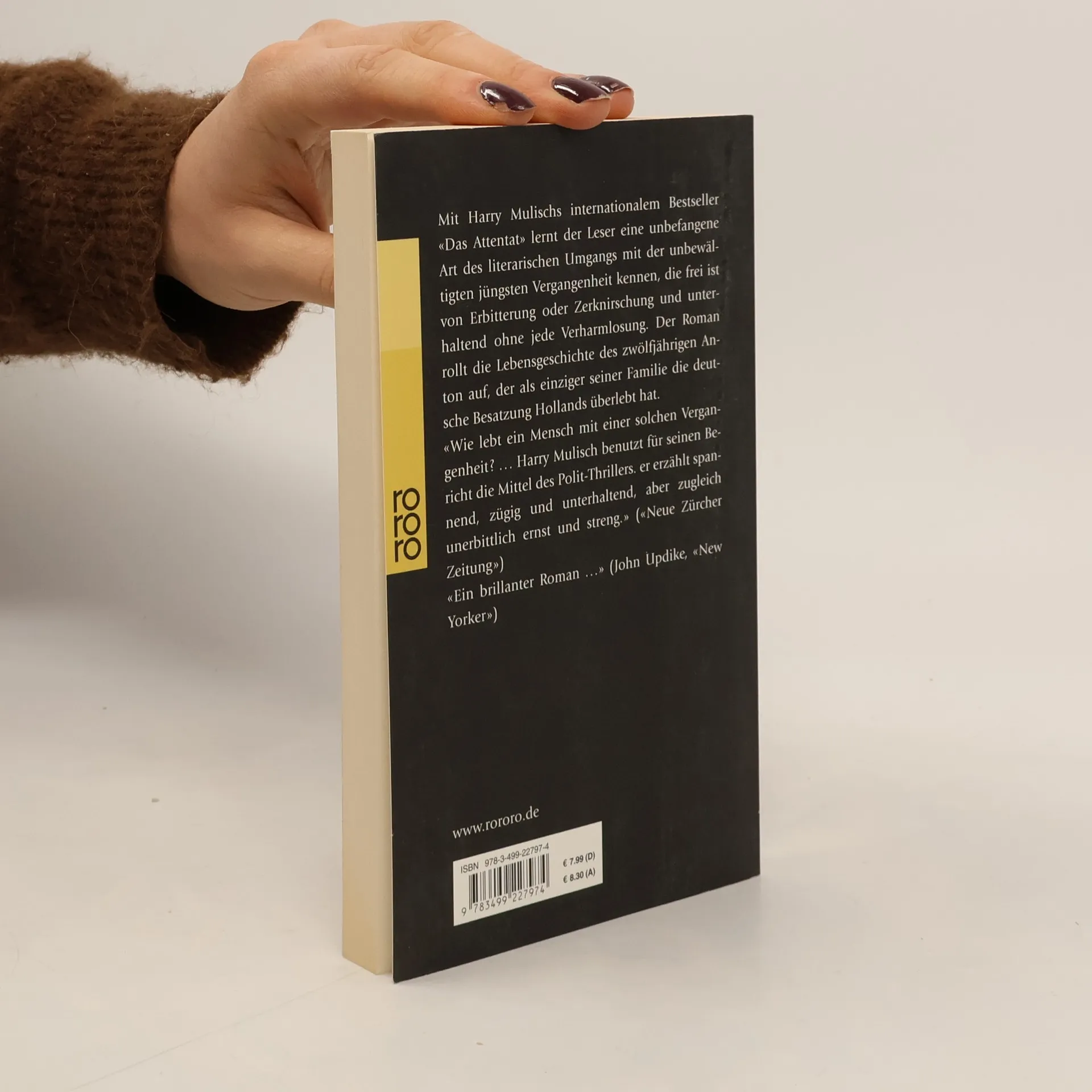 «Ein brillianter Roman.» John Updike Mit Harry Mulischs internationalem Bestseller «Das Attentat» lernt der Leser eine unbedingte Art des literarischen Umgangs mit der unbewältigten Vergangenheit kennen, die frei ist von Erbitterung oder Zerknirschung und unterhaltend ohne jede Verharmlosung. Der Roman rollt die Lebensgeschichte des zwölfjährigen Anton auf, der als einziger seiner Familie die deutsche Besatzung Hollands überlebt hat. «Wie lebt ein Mensch mit einer solchen Vergangenheit? ... Harry Mulisch benutzt für seinen Bericht die Mittel des Polit-Thrillers, er erzählt spannend, zügig und unterhaltend, aber zugleich unerbittlich ernst und streng.» Neue Züricher Zeitung