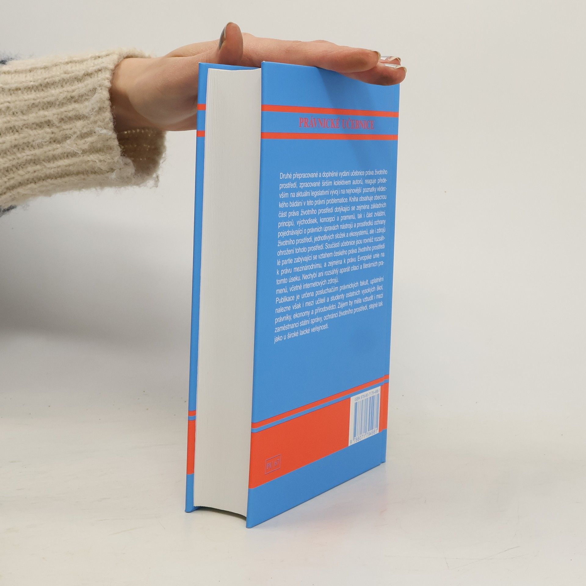 Kniha obsahuje obecnou část práva životního prostředí dotýkající se zejména základních principů, východisek, koncepcí a pramenů, tak i část zvláštní, pojednávající o právních úpravách nástrojů a prostředku ochrany životního prostředí, jednotlivých složek a ekosystému, ale i zdrojů ohrožení tohoto prostředí. Součástí učebnice jsou rovněž rozsáhlé partie zabývající se vztahem českého práva životního prostředí k právu mezinárodnímu, a zejména k právu Evropské unie na tomto úseku. Nechybí ani rozsáhlý aparát citací a literárních pramenů, včetne internetových zdrojů. Publikace je určena posluchačům právnických fakult, uplatnění nalezne však i mezi učiteli a studenty ostatních vysokých škol, právníky, ekonomy a přírodovědci. Zájem by měla vzbudit i mezi zaměstnanci státní správy, ochránci životního prostředí, stejně tak jako u široké laické veřejnosti.