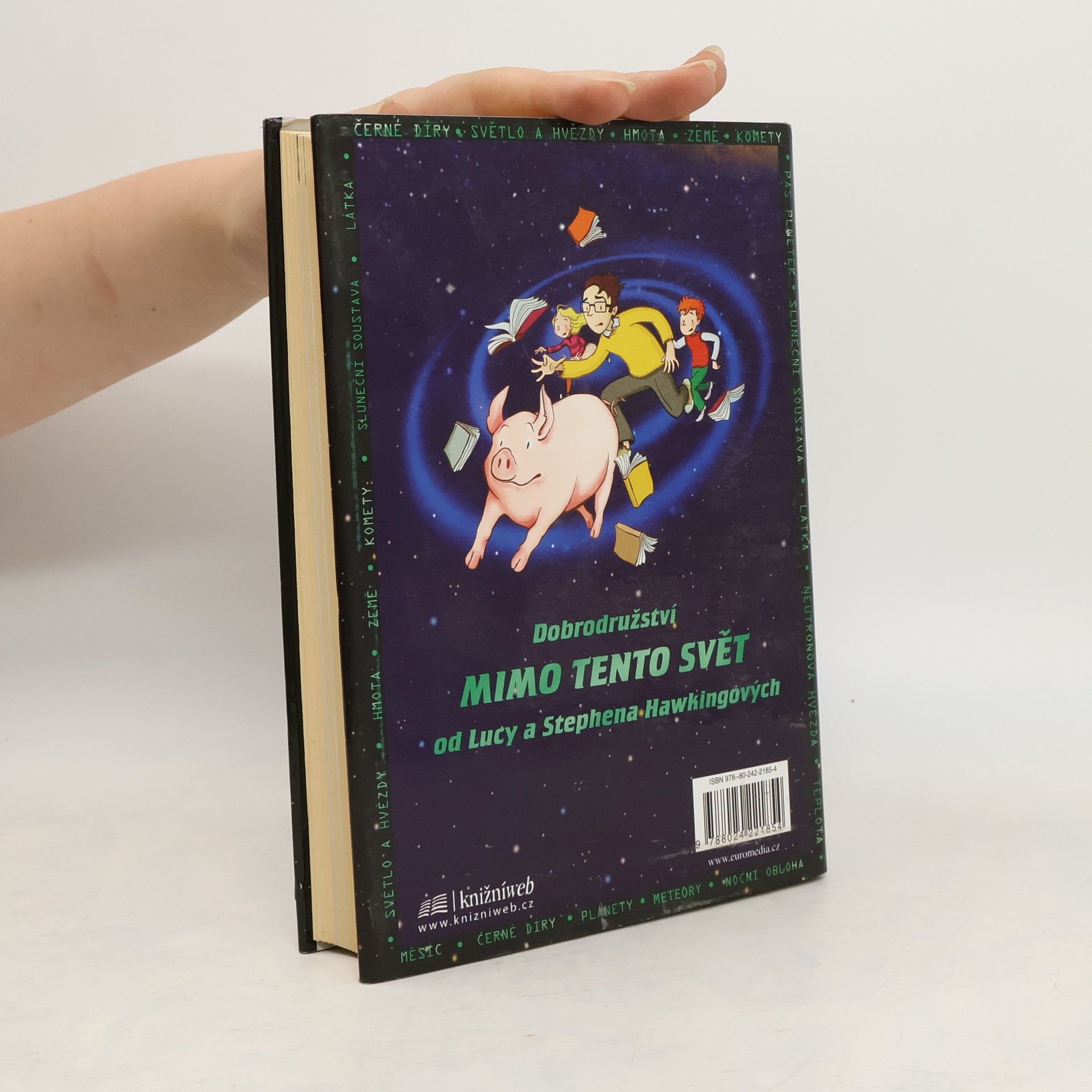Za vším je útěk Jirkova ochočeného prasátka. Díky němu se Jirka seznámí se svými sousedy - Aničkou a jejím otcem Erikem, který se zabývá vědou. Erik má nejvýkonnější počítač na světě a říká mu Kosmo. Ten dokáže vyslat Jirku a jeho kamarády na jakékoli místo ve vesmíru. Kosma by ovšem rád využil i někdo jiný - a Erik s Jirkou se tím dostanou do obrovského nebezpečí. Ve vesmíru totiž není nic nebezpečnějšího než černá díra... Kniha se čte jedním dechem a spojuje veselé dobrodružství s vědeckými údaji o vesmíru. Najdete v ní nejnovější poznatky o černých dírách od Stephena Hawkinga a také mnoho barevných fotografií přímo z kosmu.