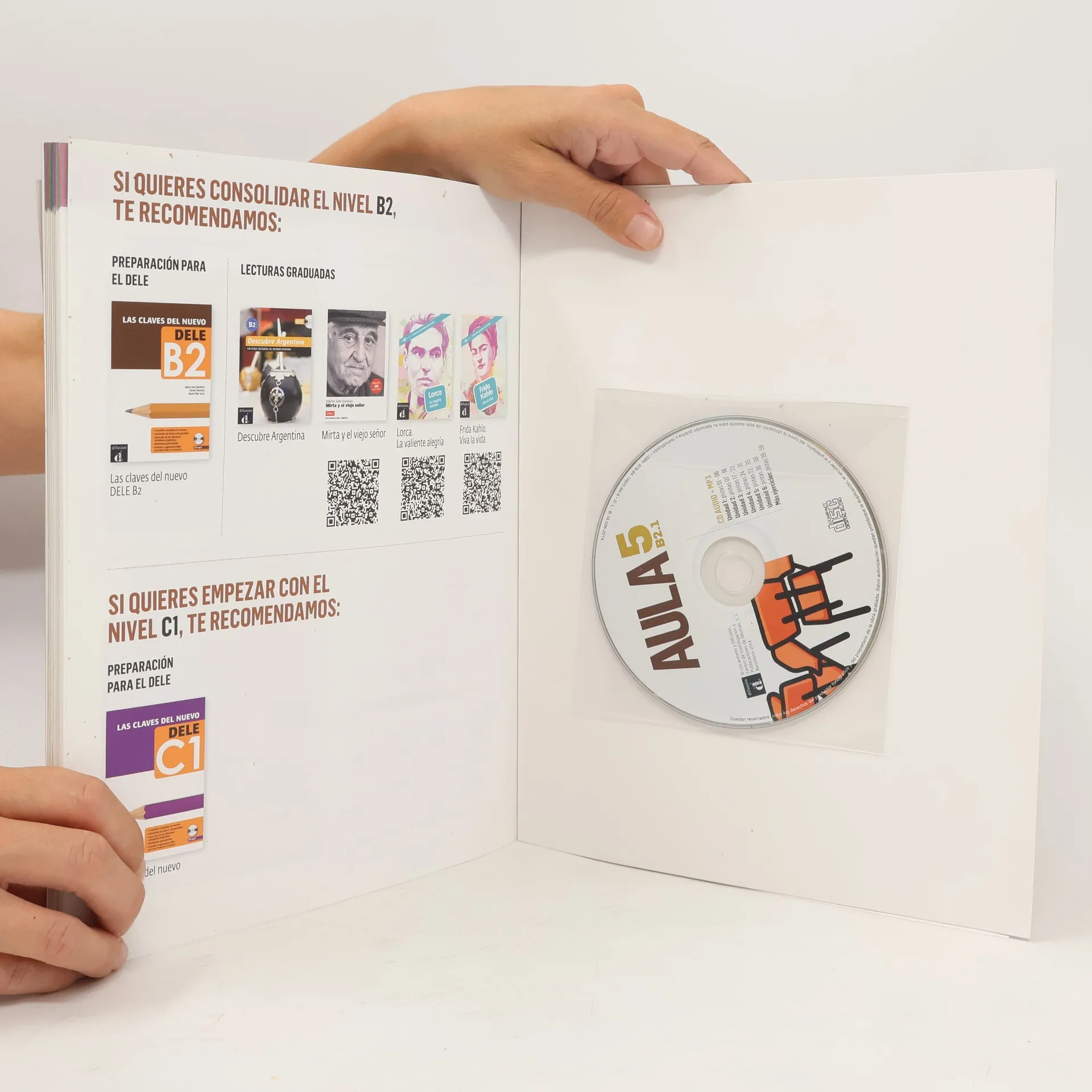 Aula 5 Nueva edición es el curso de español orientado a la acción que hace del aula el contexto perfecto para el aprendizaje de la lengua… por su variedad de actividades, que tienen en cuenta los diferentes estilos de aprendizaje por su equilibrio entre el trabajo de comprensión, de producción y de interacción por su tratamiento de la gramática, riguroso y significativo por su lenguaje gráfico claro y atractivo porque ofrece numerosos documentos auditivos porque cada unidad didáctica incorpora un vídeo porque se complementa con una plataforma de recursos digitales Aula 5 Nueva edición es un manual compacto; es decir, en un mismo volumen se el libro del alumno el cuaderno de ejercicios (Más ejercicios) un CD con las audiciones