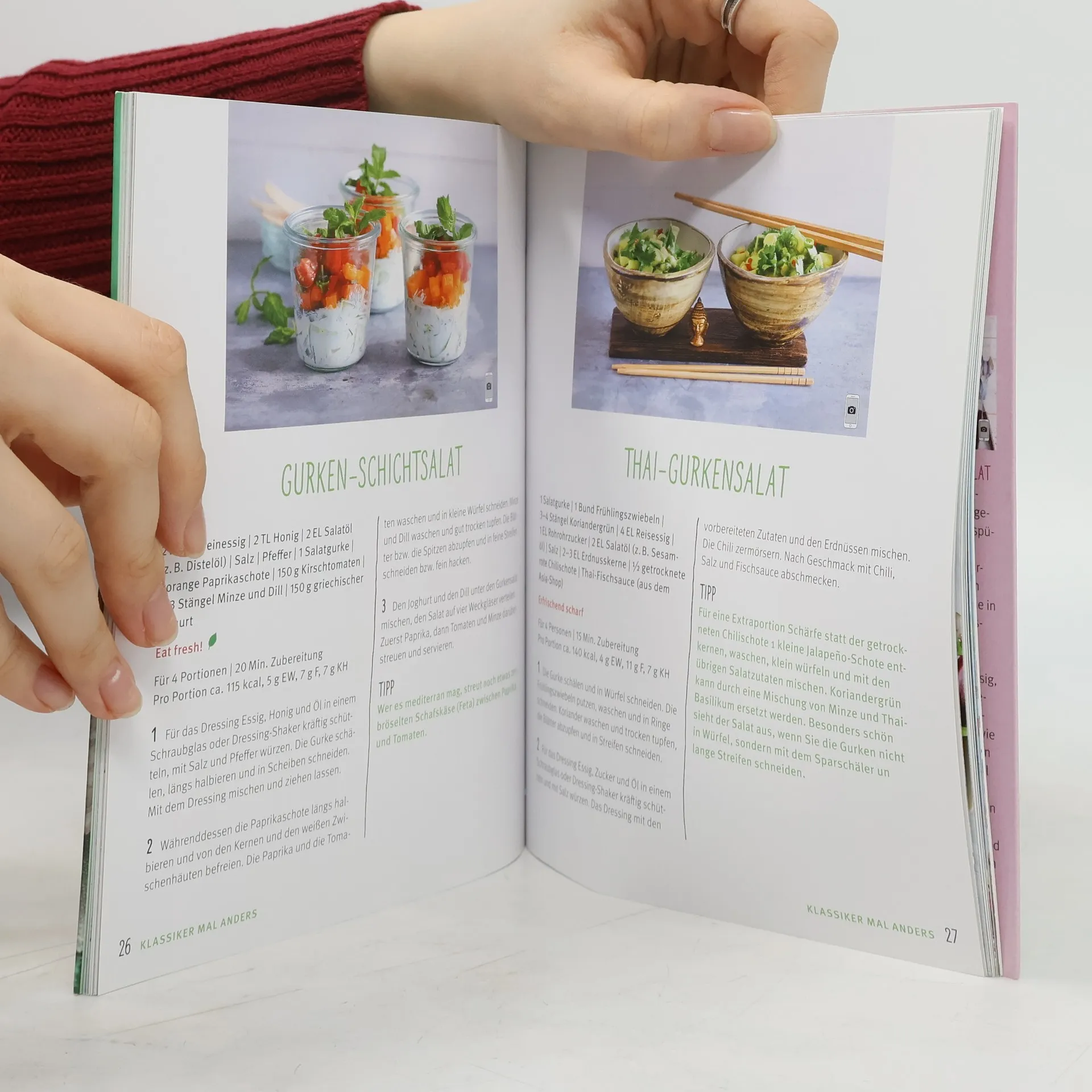 Salat-Rezepte: Endlich neue Ideen für leckere Fitmacher! Der GU-Küchenratgeber „Salate“ bietet kreative und köstliche Salatideen – vom klassischen Rezept bis hin zu Snacks für unterwegs. Im Buch finden Sie: - Tipps zu Dressings, Blattsalaten, Toppings und Brotrezepten. - Rohkostsalate wie Blumenkohl-Tabouleh, Möhren-Grapefruit-Salat und Rote-Bete-Spinat-Salat. - Neuinterpretationen klassischer Salate, darunter Caesar Salad mit Saltimbocca und Sommersalat mit Nektarinen. - Salate für unterwegs, wie Grünkernsalat mit Bohnen und Linsensalat mit Salbei-Birne. - Wellness-Salate wie Buddha Bowl und Detox-Salat. Für alle Salatliebhaber, die nach Abwechslung suchen: Kombinieren Sie Rucola, Chicorée und knackige Rohkost mit fruchtigen Aromen und feinen Dressings. Ob zur Gewichtsreduktion, für einen Vitalstoff-Kick oder als Partybeitrag – es gibt zahlreiche Rezepte, um Ihre Salatkreationen aufzupeppen. Für gesunde Büro-Mahlzeiten empfehlen sich Tricks wie das Mitnehmen von Dressing im Schraubglas oder das Einwickeln von Salaten in Reispapier. Detox-Salate helfen, den Stress des Alltags abzubauen und bringen Sie zurück in Balance. Mit diesem Ratgeber wird das Salatzubereiten zum Vergnügen – viel Spaß beim Schnippeln und Genießen!