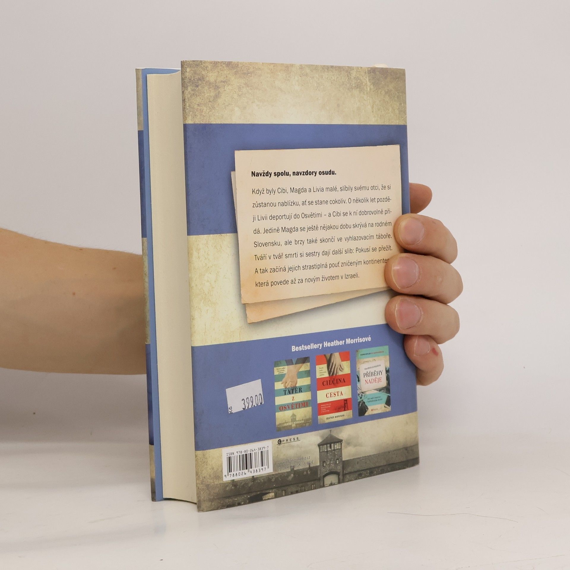 Navždy spolu, navzdory všemu. Od autorky bestselleru Tatér z Osvětimi. Když byly Cibi, Magda a Livia malé, slíbily svému otci, že si zůstanou nablízku, ať se stane cokoliv. O několik let později Livii deportují do Osvětimi – a Cibi se k ní dobrovolně přidá. Jedině Magda se ještě nějakou dobu skrývá na rodném Slovensku, ale brzy také skončí ve vyhlazovacím táboře. Tváří v tvář smrti si sestry dají další slib: pokusí se přežít. A tak začíná jejich strastiplná pouť zničeným kontinentem, která povede až za novým životem v Izraeli.