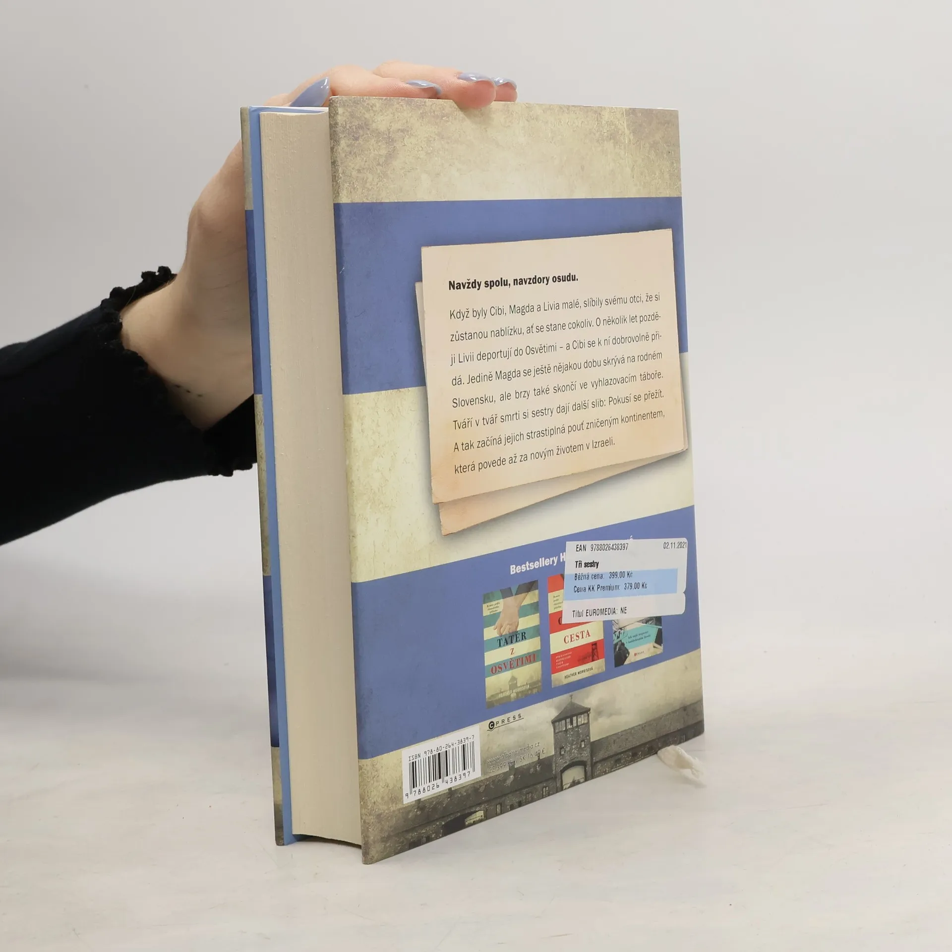 Navždy spolu, navzdory všemu. Od autorky bestselleru Tatér z Osvětimi. Když byly Cibi, Magda a Livia malé, slíbily svému otci, že si zůstanou nablízku, ať se stane cokoliv. O několik let později Livii deportují do Osvětimi – a Cibi se k ní dobrovolně přidá. Jedině Magda se ještě nějakou dobu skrývá na rodném Slovensku, ale brzy také skončí ve vyhlazovacím táboře. Tváří v tvář smrti si sestry dají další slib: pokusí se přežít. A tak začíná jejich strastiplná pouť zničeným kontinentem, která povede až za novým životem v Izraeli.