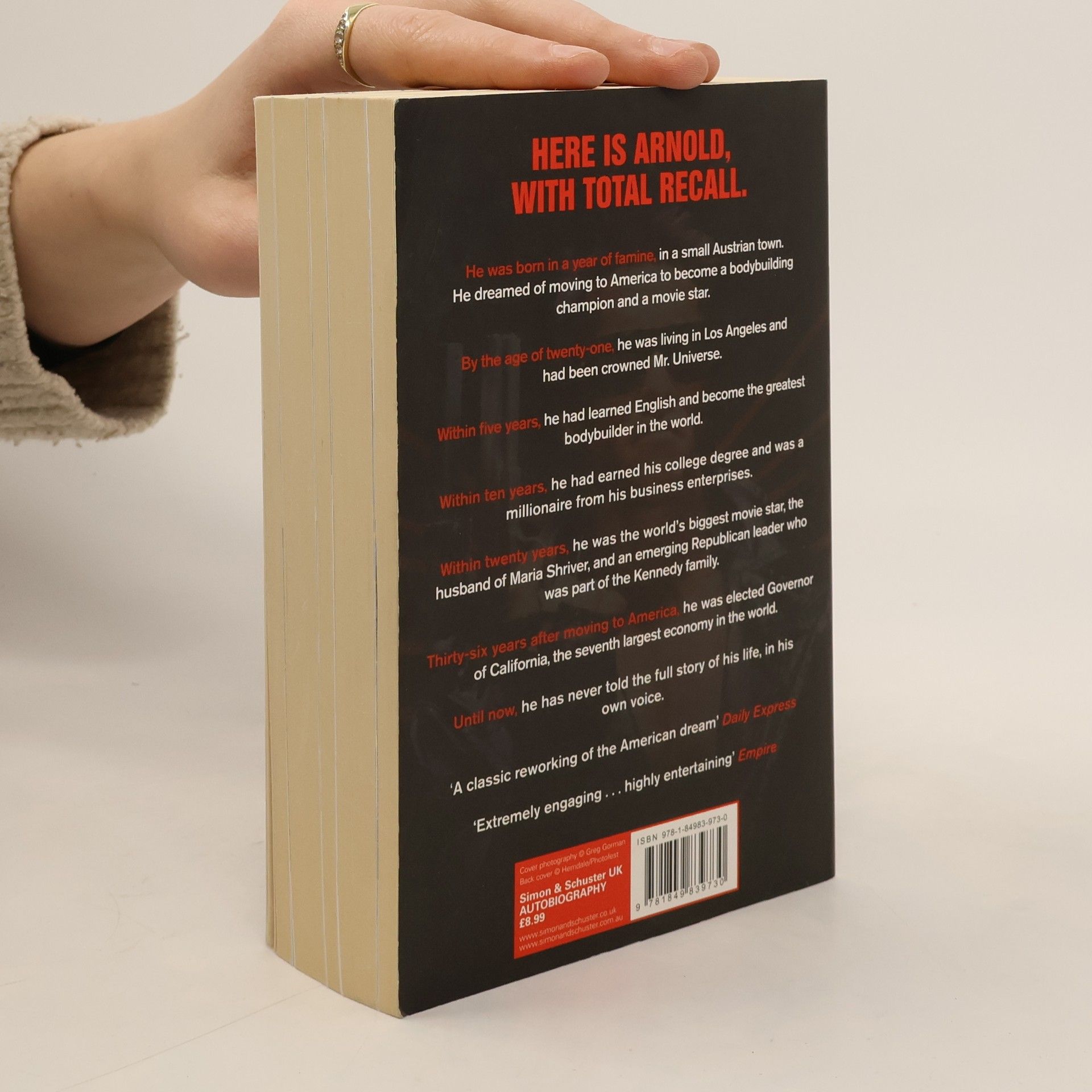 A memoir by the bodybuilder, actor, and former governor of California traces his journey to the United States and rise from Mr. Universe champion to millionaire businessman, and discusses his political achievements and the choices he regrets.