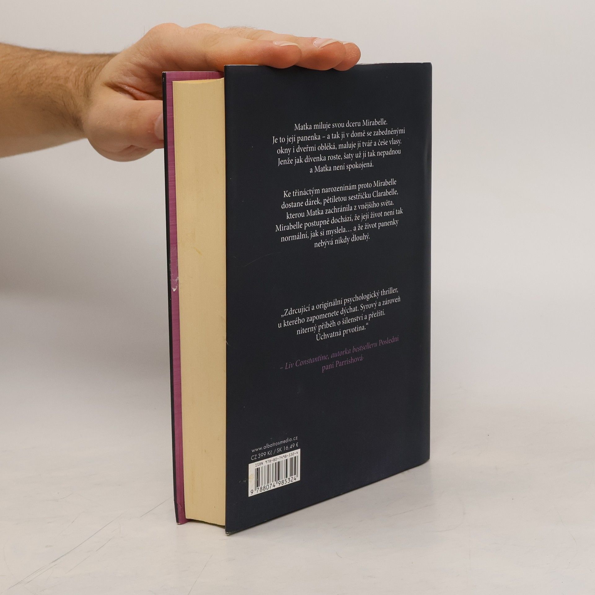 Mirabelle žije v domě se zabedněnými okny a zamčenými dveřmi. Nikdy se nepodívala ven, protože jí to Matka nedovolí. A ta přece všechno dělá pro její dobro. Miluje Mirabelle jako svoji panenku. A tak ji obléká do hezkých šatiček, maluje jí tvář a češe vlasy. Ke třináctým narozeninám jí dokonce přinese speciální dárek – mladší sestřičku Clarabelle, kterou zachránila z vnějšího světa. Mirabelle ale dojde, že Clarabelle ji má nahradit. Ona už je totiž velká, šaty jí nepadnou tak dobře jako kdysi a Matka není spokojená. Jenomže Clarabelle tvrdí, že se ve skutečnosti jmenuje Emma. Navíc se nezdá, že by měla radost, že ji Matka do domu přivedla. Chce svou skutečnou maminku. Mirabelle postupně zjišťuje, že její soužití s Matkou není tak normální, jak si vždy myslela... a že život panenky nebývá nikdy dlouhý.