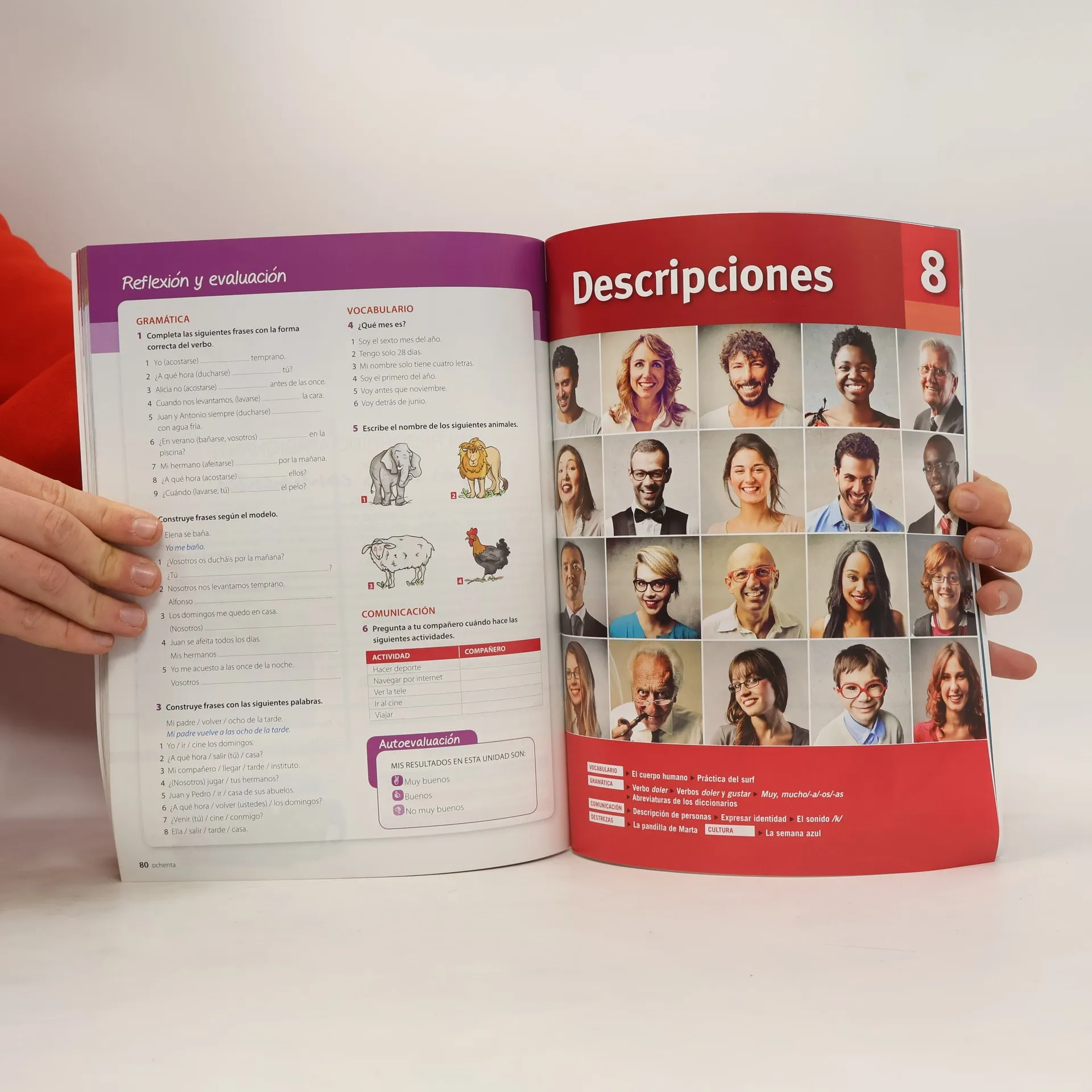 Dirigido a estudiantes de ensenanza secundaria de nivel A1 del MCER. Nueva edición actualizada y renovada con una propuesta didáctica coherente, entretenida, ágil y motivadora que sigue una progresión lógica de presentación y práctica de la lengua. Nueva maqueta y actualización de los contenidos y de algunas ilustraciones así como nuevas fotografías. Licencia digital con los contenidos, las audiciones y cientos de ejercicios interactivos incluida en el libro del alumno y el cuaderno de ejercicios. Dividido en 9 unidades. Más actividades y contenidos: 2 páginas más por unidad que la versión precedente. Se trabajan estrategias de aprendizaje, así como la pronunciación y la ortografía. Más ejercicios en todas las unidades y nuevos apartados de Cultura, Comunicación y Vocabulario. Al final del libro hay un anexo con los apartados: Proyectos, Vocabulario, agrupado temáticamente, Resumen gramatical y las Transcripciones de los audios. El libro digital ofrece 200 actividades digitalizadas. Los audios se encuentran en el libro digital y pueden ser oídos o descargados en: ele.sgel.es/descargas.asp. Vídeos en YouTube, con escenas cotidianas y referencias culturales e interculturales. Un capítulo cada dos unidades Guía del profesor ampliada con propuestas didácticas para el libro y los vídeos, actividades extra y fichas fotocopiables para los estudiantes. Una unidad de muestra en: www.sgel.es/ele