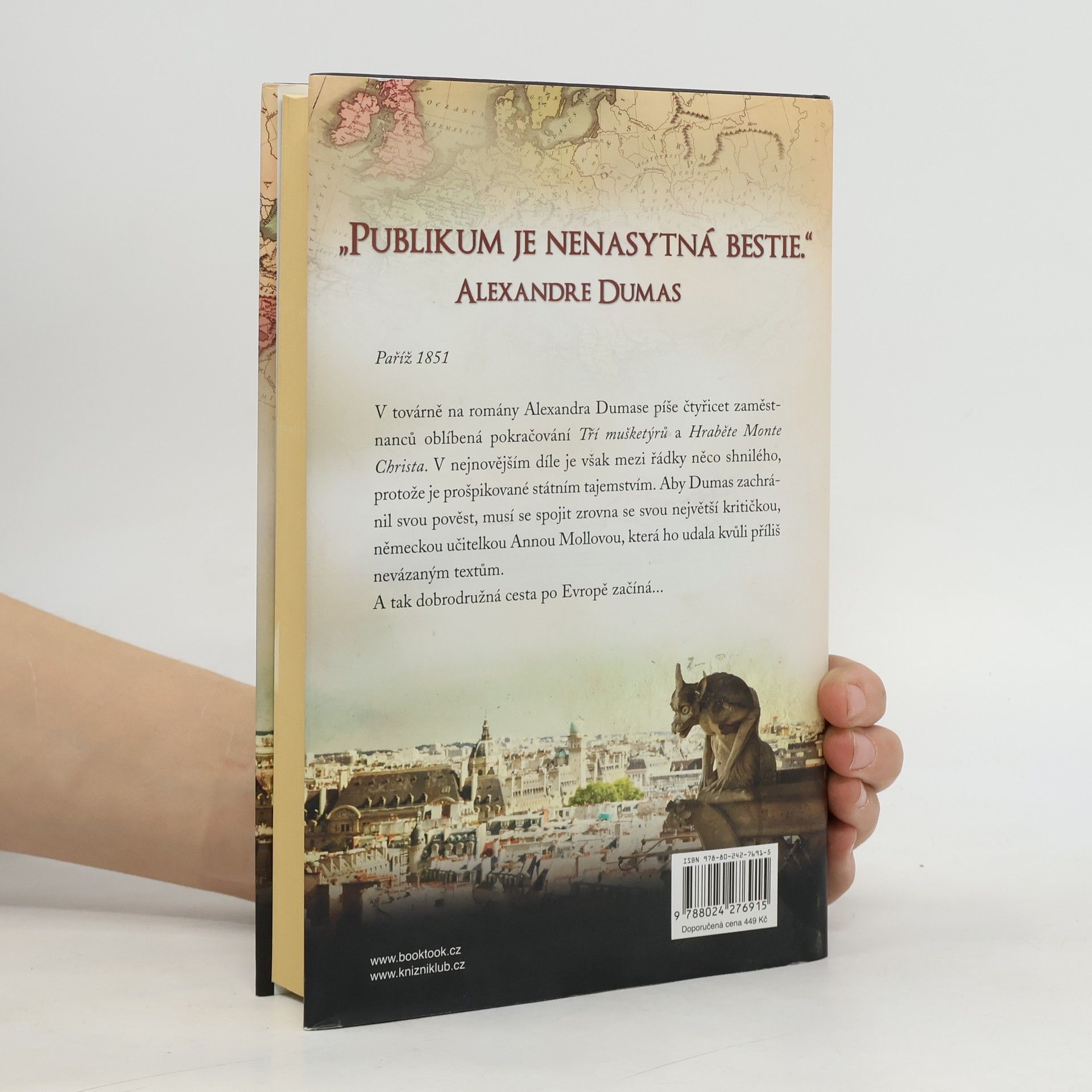 Paříž 1851. V továrně na romány Alexandra Dumase píše čtyřicet zaměstnanců oblíbená pokračování Tří mušketýrů a Hraběte Monte Christa. V nejnovějším díle je však mezi řádky něco shnilého, protože je prošpikované státním tajemstvím. Aby Dumas zachránil svou pověst, musí se spojit zrovna se svou největší kritičkou, německou učitelkou Annou Mollovou, která ho udala kvůli příliš nevázaným textům. A tak jejich dobrodružná cesta po Evropě začíná Tento román Dirka Husemanna získal v roce 2020 v Německu titul KNIHA ROKU.