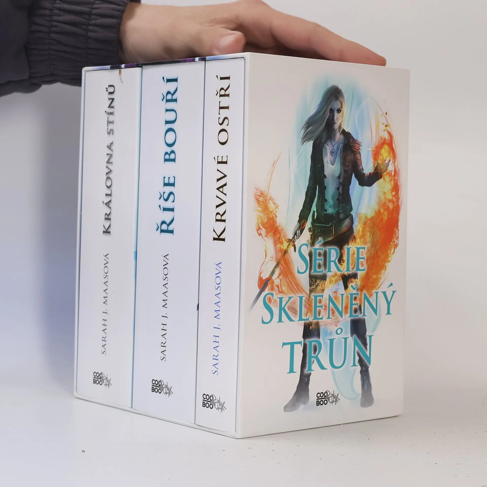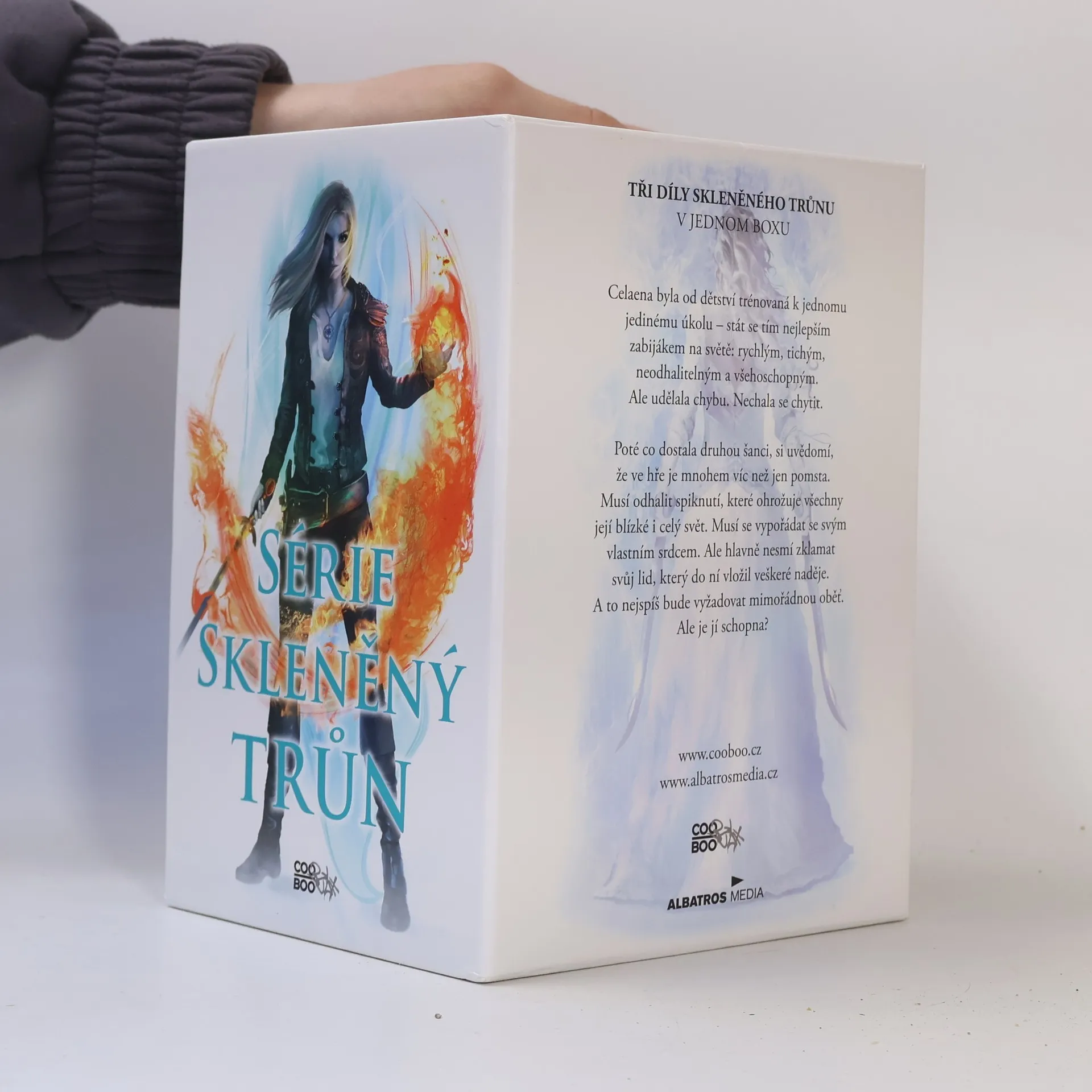 Tři díly Skleněného trůnu v jednom boxu. Celaene byla od dětství trénovaná k jedinému úkolu – stát se tím nejlepším zabijákem na světě, rychlým, tichým, neodhalitelným a všehoschopným. Ale udělala chybu. Nechala se chytit. Poté co dostala druhou šanci, si uvědomí, že ve hře je mnohem víc než jen pomsta. Musí odhalit spiknutí, které ohrožuje všechny její blízké i celý svět. Musí se vypořádat se svým vlastním srdce. Ale hlavně nesmí zklamat svůj lid, který do ní vložil veškeré naděje. A to nejspíš bude vyžadovat mimořádnou oběť. Ale je jí schopna?