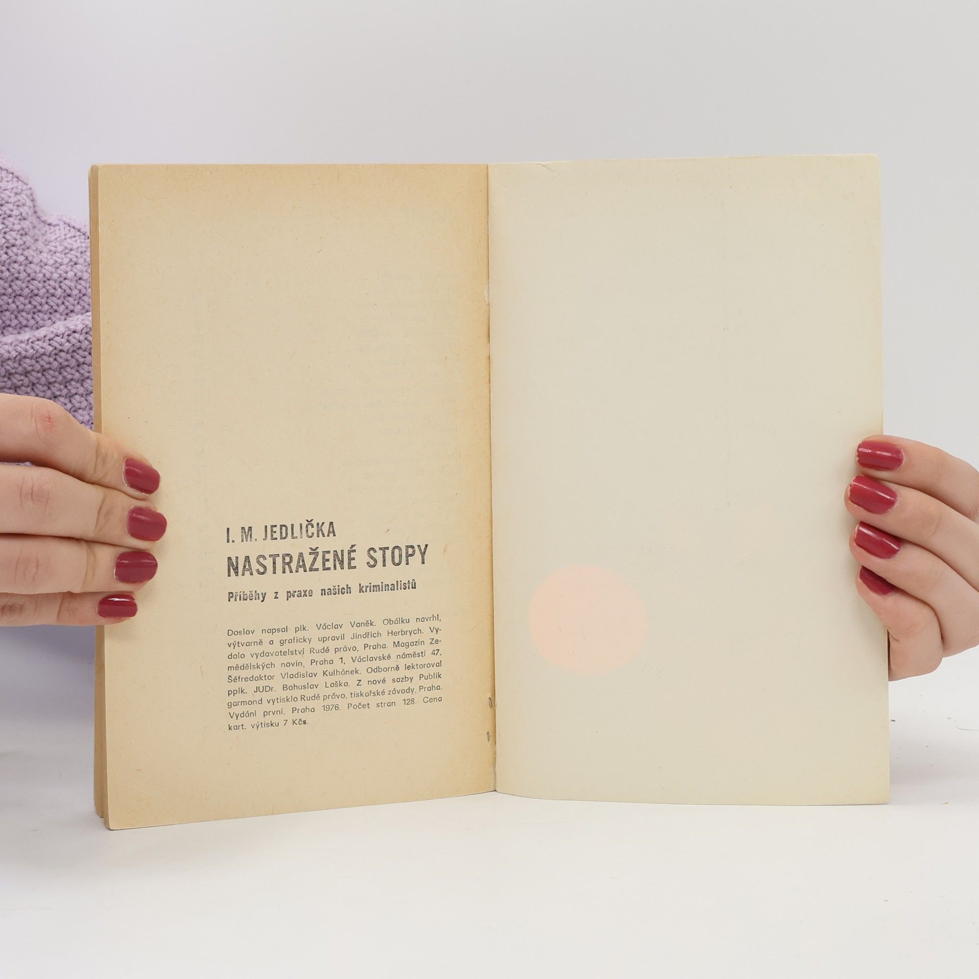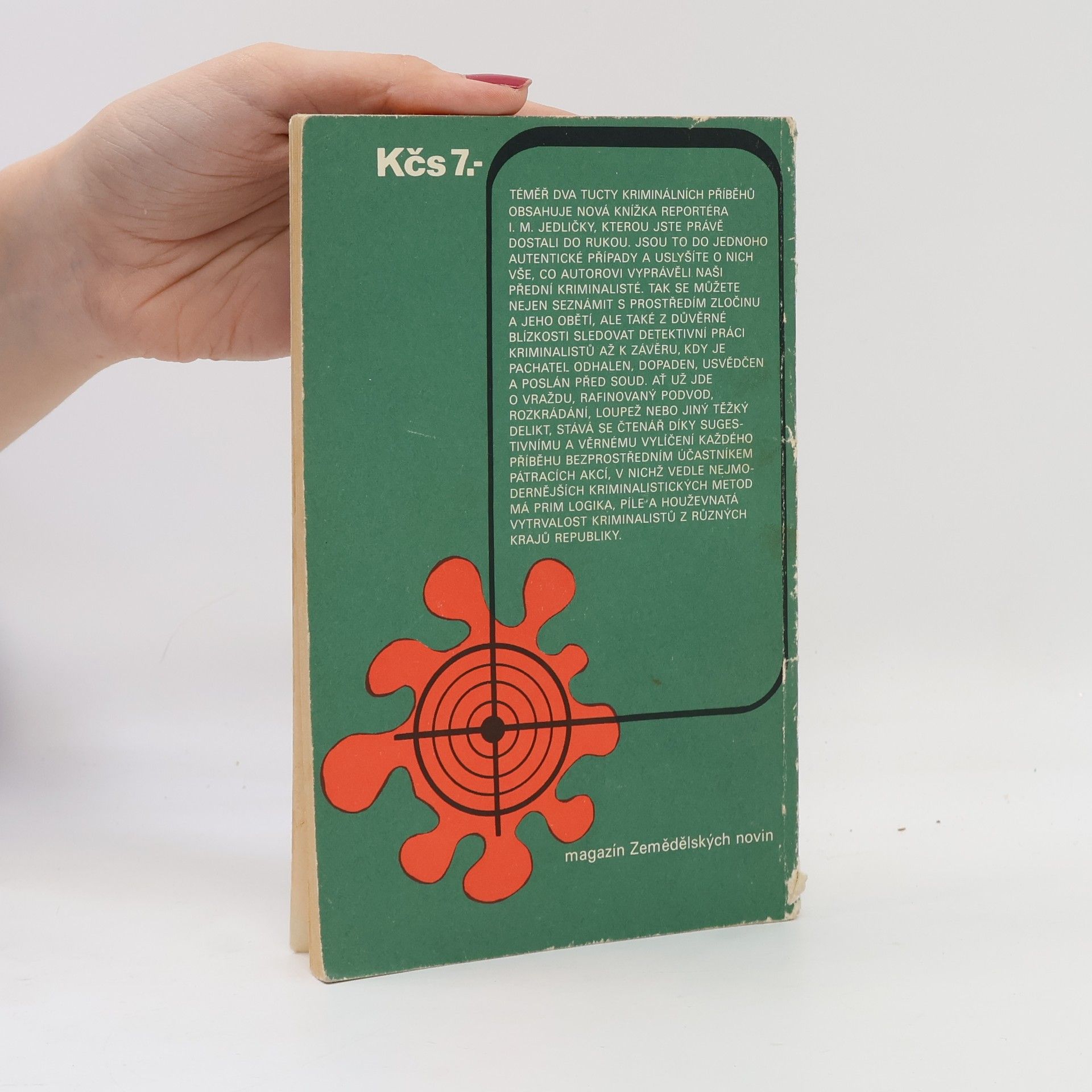 Příběhy z praxe našich kriminalistů. Téměř dva tucty kriminálních příběhů obsahuje nová knížka reportéra I. M. Jedličky, kterou jste právě dostali do rukou. Jsou to do jednoho autentické případy a uslyšíte o nich vše, co autorovi vyprávěli naši přední kriminalisté. Tak se můžete nejen seznámit s prostředím zločinu a jeho obětí, ale také z důvěrné blízkosti sledovat detektivní práci kriminalistů až k závěru, kdy je pachatel odhalen, dopaden, usvědčen a poslán před soud. Ať už jde o vraždu, rafinovaný podvod, rozkrádání, loupež nebo jiný těžký delikt, stává se čtenář díky sugestivnímu a věrnému vylíčení každého příběhu bezprostředním účastníkem pátracích akcí, v nichž vedle nejmodernějších kriminalistických metod má prim logika, píle a houževnatá vytrvalost kriminalistů z různých krajů republiky.