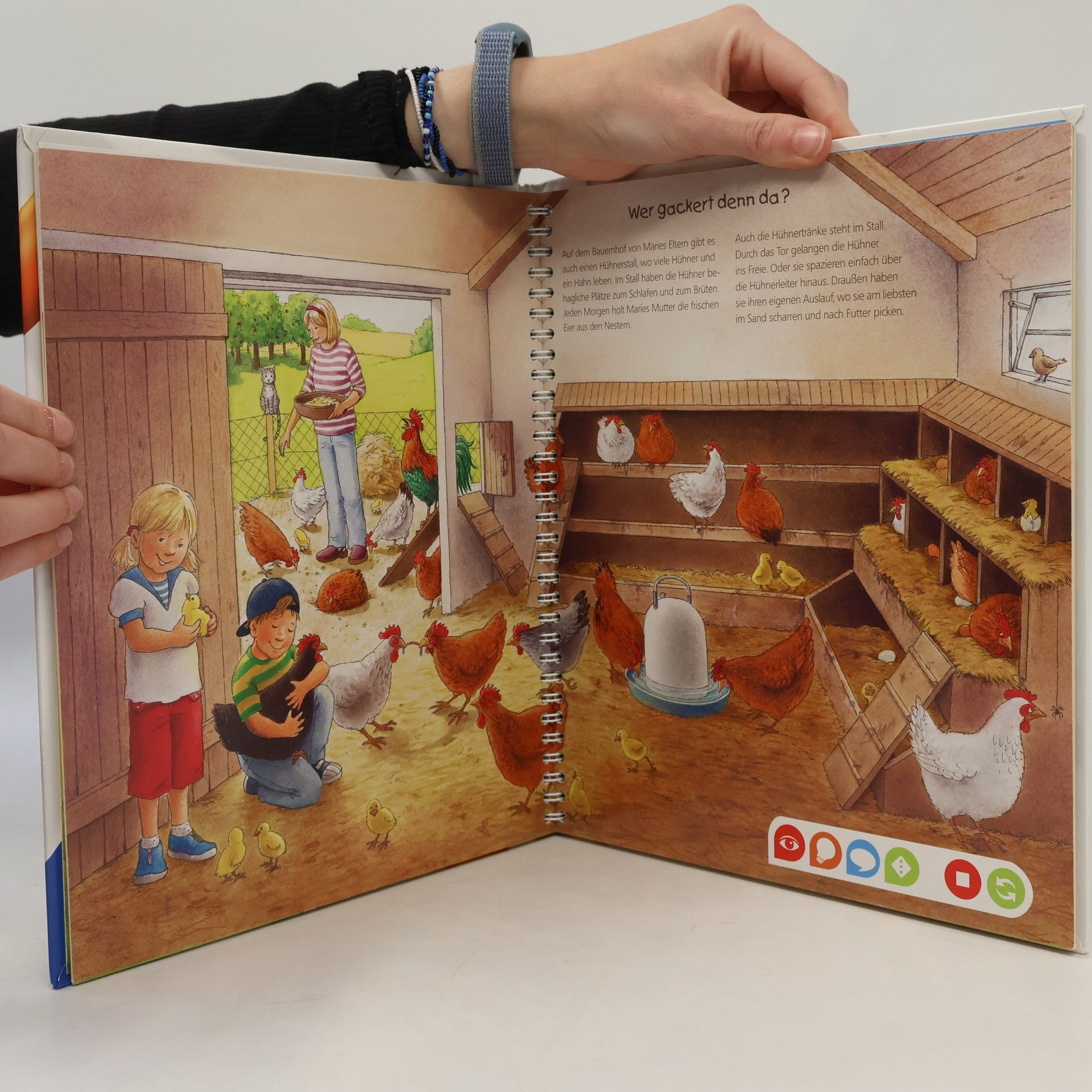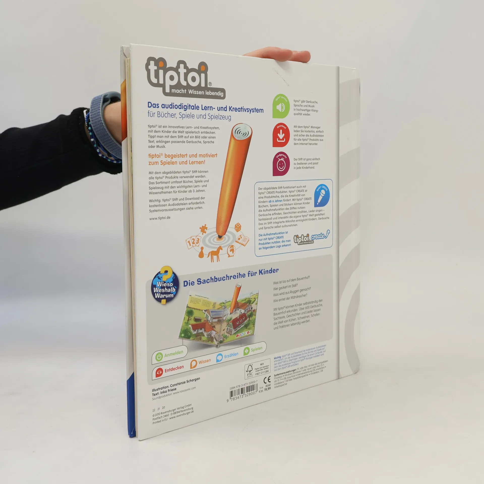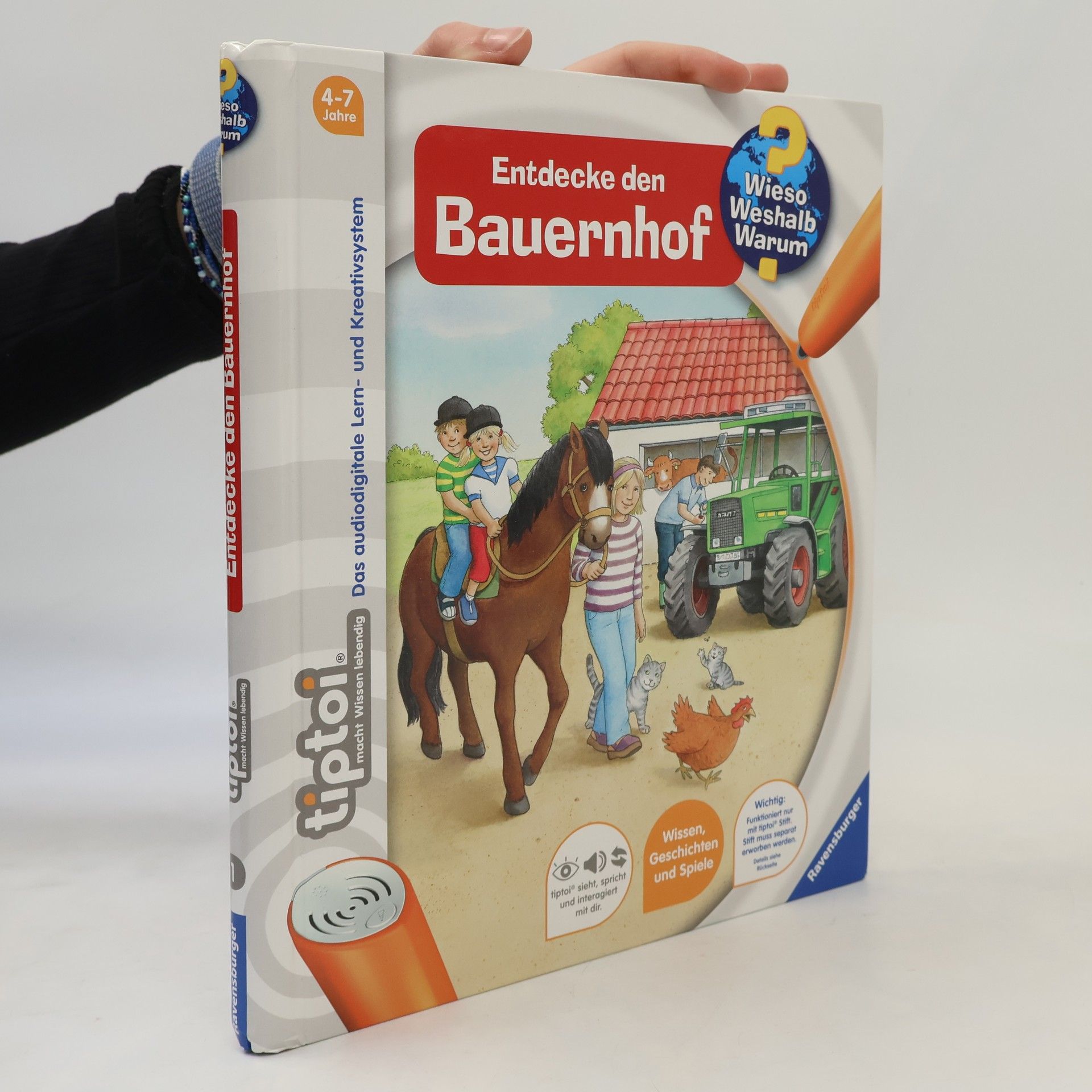 Willkommen auf dem Bauernhof! Hier kommen Tierliebhaber und Technikfans gleichermaßen auf ihre Kosten. Lebensechte Geräusche und faszinierende Bilder vermitteln spielerisch Grundwissen über Tiere, Pflanzen und Maschinen auf dem Bauernhof. Suchspiele, Kinderlieder und eine kunterbunte Wimmelseite laden zum Entdecken und Ausprobieren ein. tiptoi-Stift nicht enthalten.